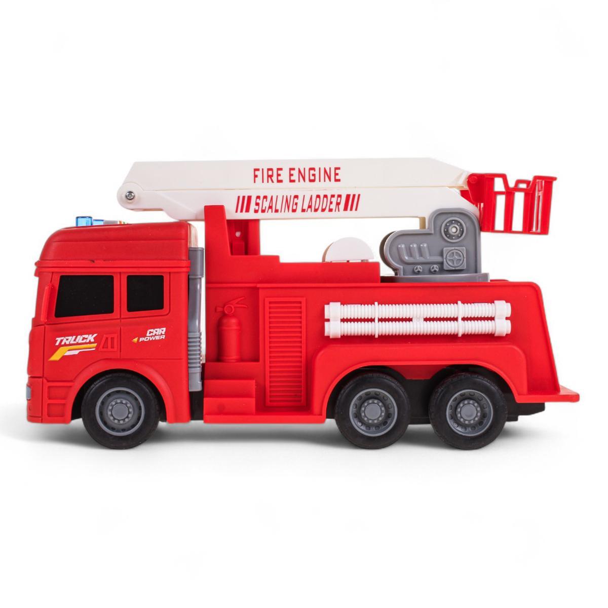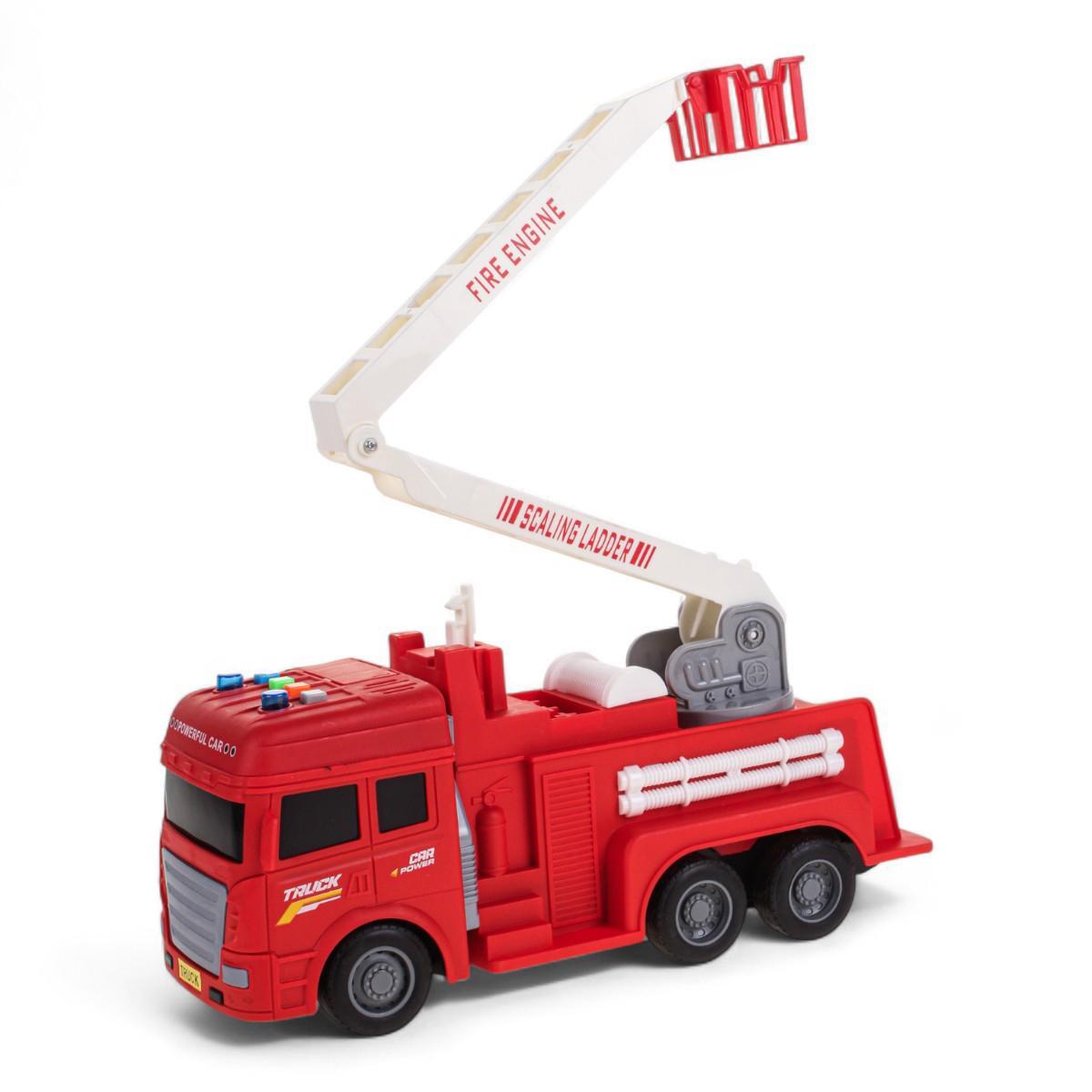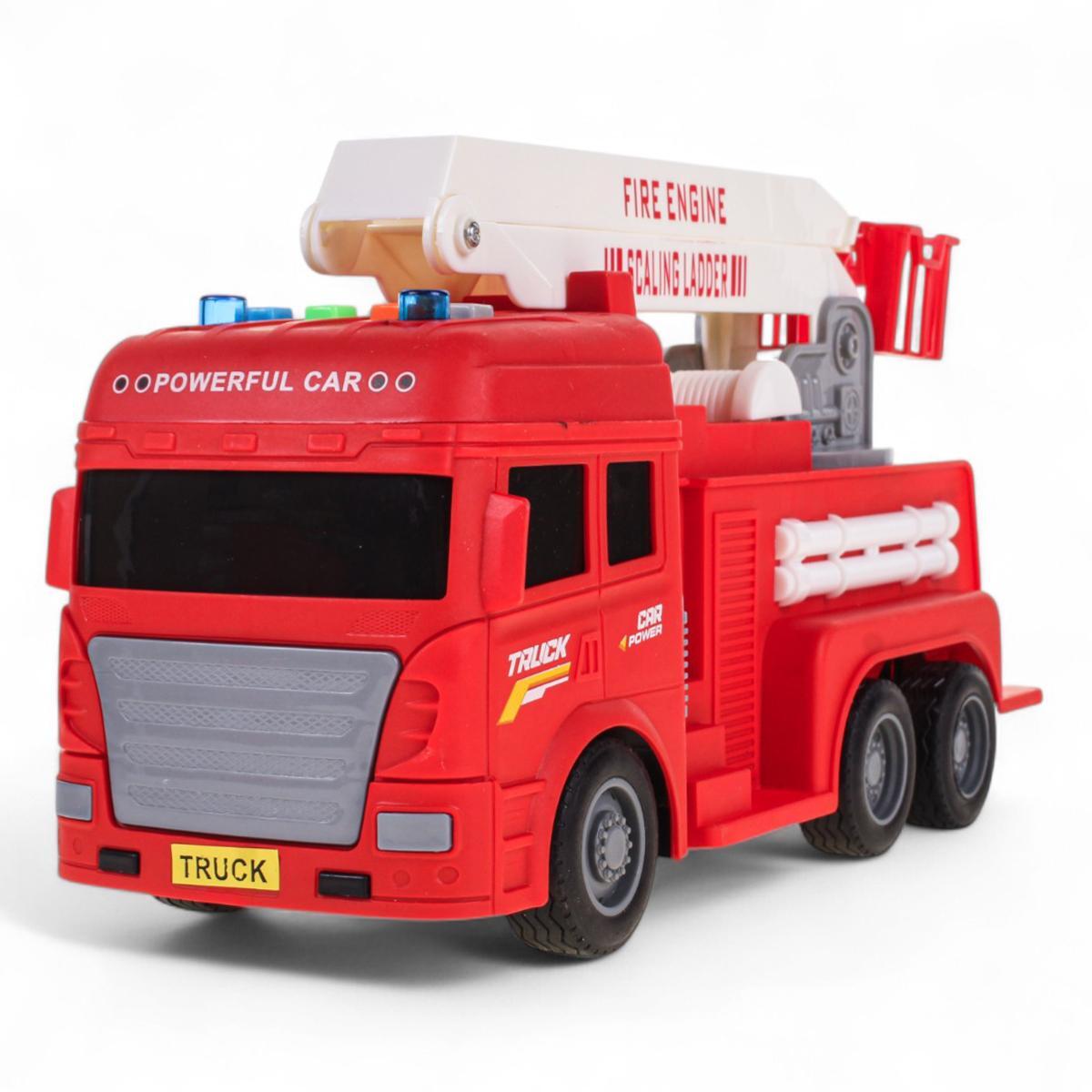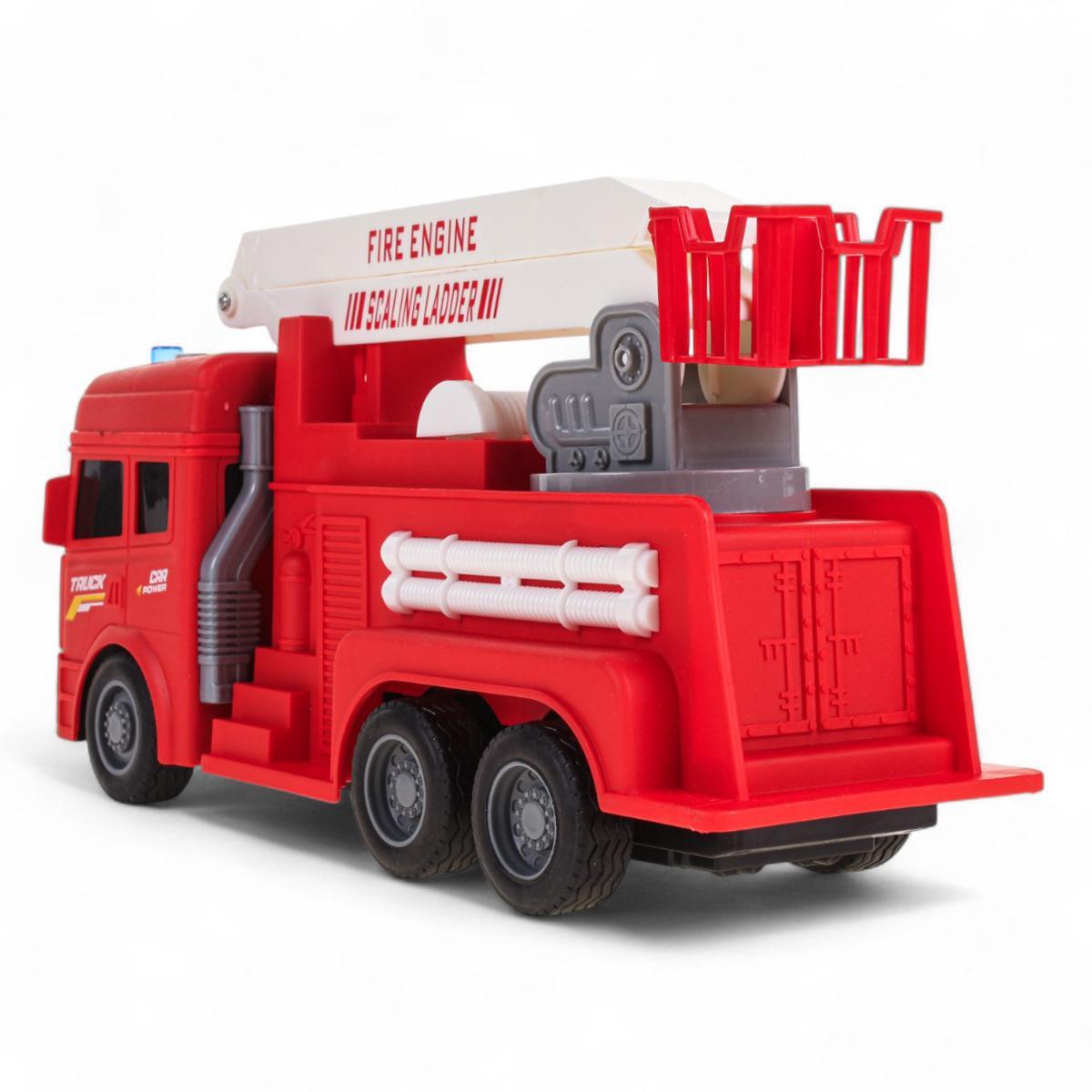 Масштаб 1:16 делает машину достаточно крупной для удобной игры, а прочный пластик гарантирует долговечность. Детализированная модель с лестницей и шлангами максимально приближена к реальному прототипу спецтехники.