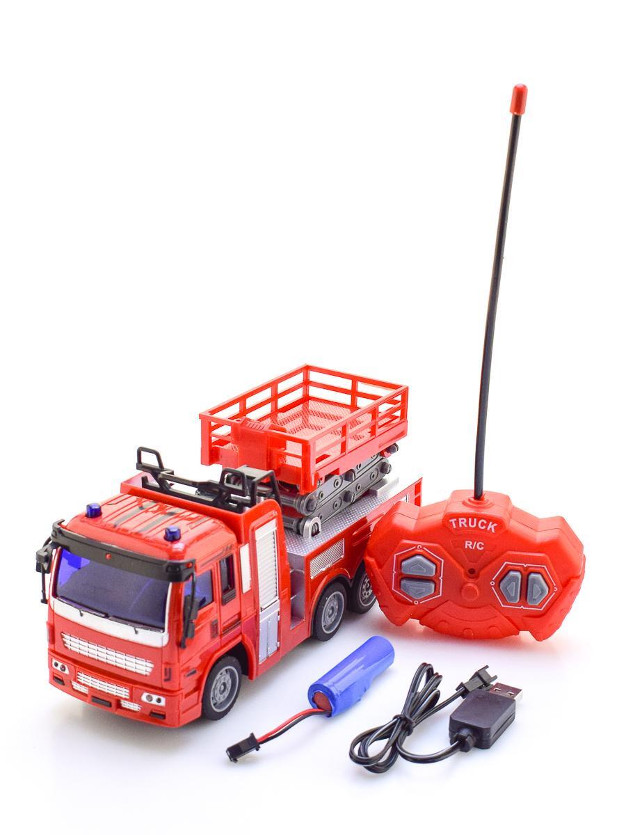 Пожарная машина на РУ, красная, масштаб 1:30, с подъемной лестницей