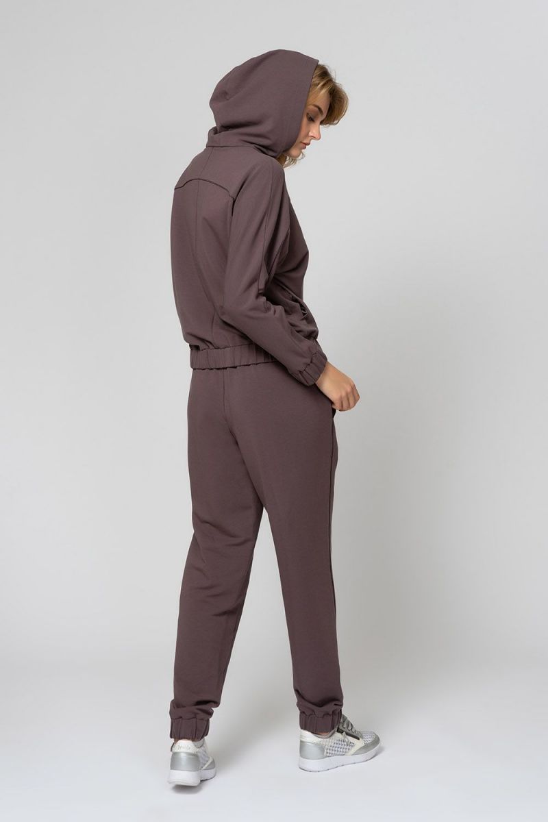 Костюм домашний женский, куртка с капюшоном и брюки, коричневый, размер M, 62% модал, 33% хлопок, 5% эластан