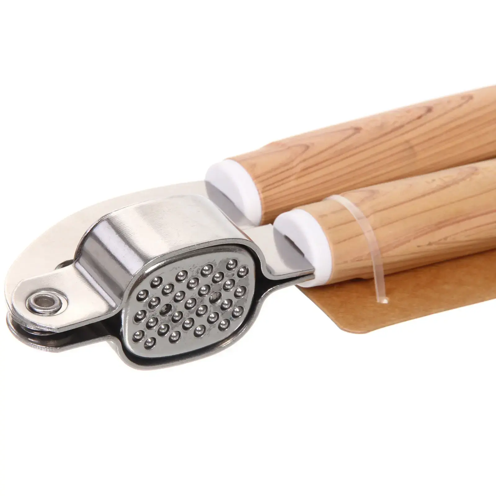 Преимущества пресса для чеснока «ECO LIFE»: прочная металлическая конструкция, которая гарантирует долговечность, и ручки из светлого дерева, обеспечивающие надежный захват. Металлическая часть с множеством отверстий позволяет получить однородную массу, что делает ваши блюда более вкусными и ароматными.