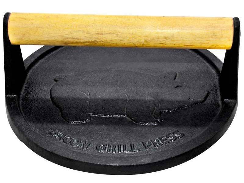 Познакомьтесь с вашим новым помощником на кухне — чугунный пресс для гриля с деревянной ручкой. Его основная задача — сделать приготовление блюд простым и по-настоящему результативным: мясо равномерно прожаривается, приобретает аппетитную корочку и сохраняет сочность внутри. Благодаря рельефному основанию с оригинальным рисунком «bacon grill press» вы получаете каждый кусочек с характерным следом, будто на барбекю-ресторане.