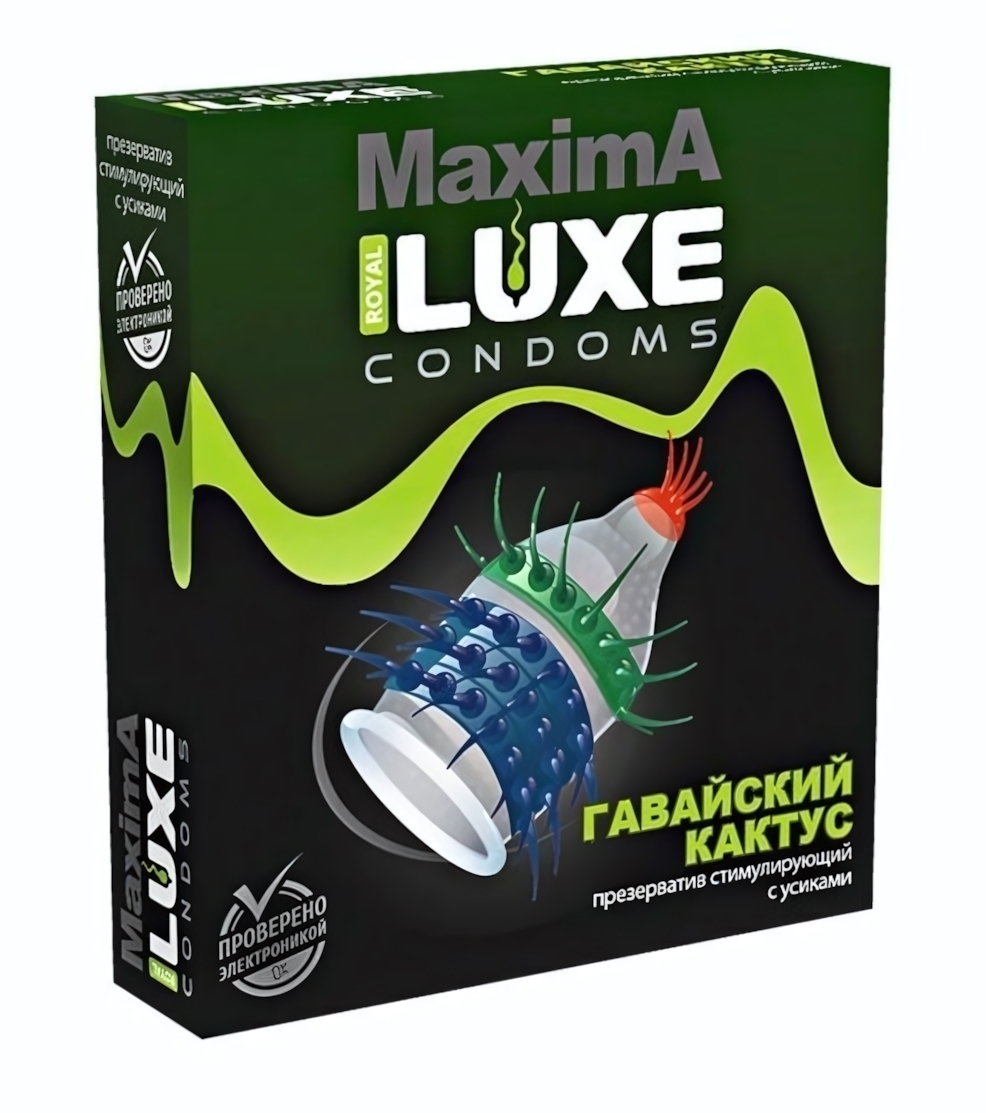 Презерватив имеет длину 18 см и упакован по одной штуке, что делает его удобным для использования. Упаковка выполнена в стильном черном цвете с яркими элементами, что подчеркивает его уникальность. Не упустите возможность сделать вашу интимную жизнь более насыщенной и яркой с презервативом LUXE Maxima «Гавайский кактус»!