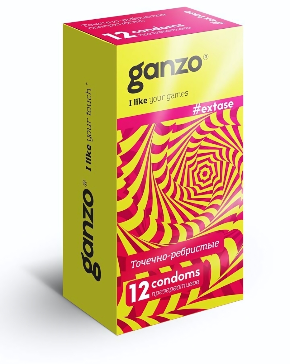 Презервативы анатомической формы Ganzo Extase, точечно-ребристые, 12 шт., латекс с силиконовой смазкой