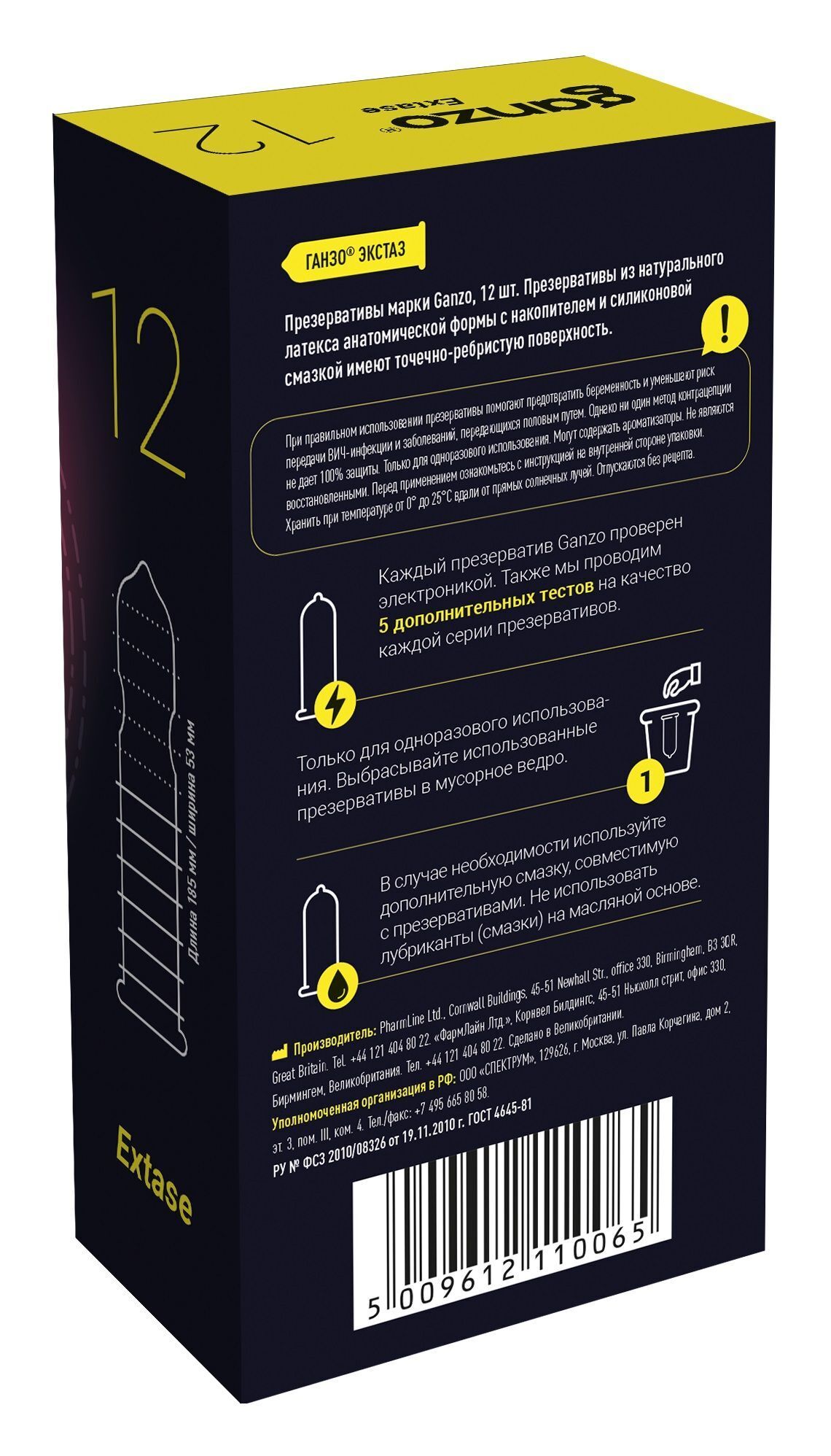 Каждый презерватив проходит строгий контроль по британским стандартам качества. Электростатическая проверка исключает микротрещины, а специальная форма предотвращает соскальзывание. Сертифицированная продукция хранится в защитной индивидуальной упаковке.