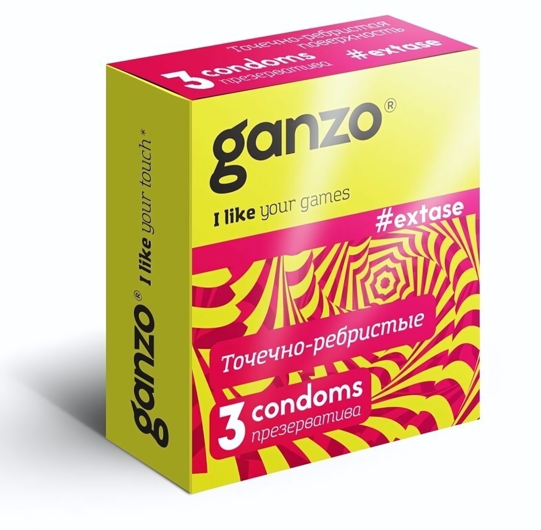 Презервативы анатомические «Extase», точечно-ребристые, латекс, 3 шт. для чувственной стимуляции