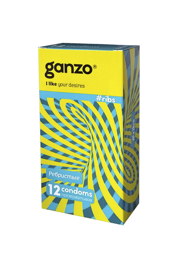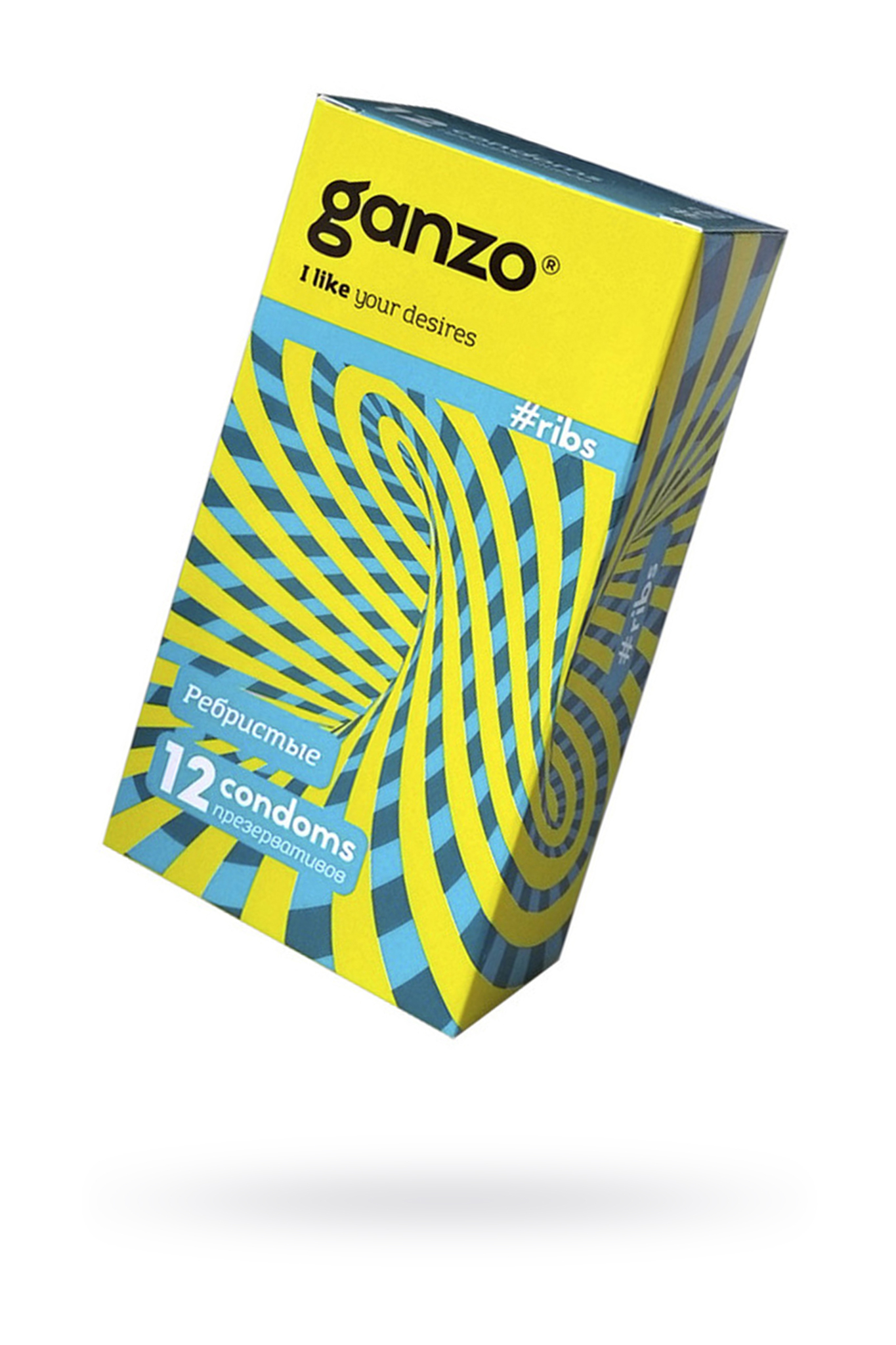 Презервативы Ganzo Ribs ребристые, латекс, 18 см x 5.2 см, 12 шт, надежная защита и комфорт