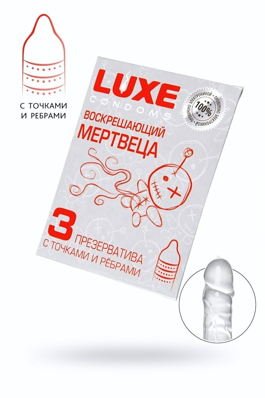 Презервативы Luxe «Воскрешающий мертвеца», мята, 3 шт, 18 см, гладкие/ребристые/точки, латекс