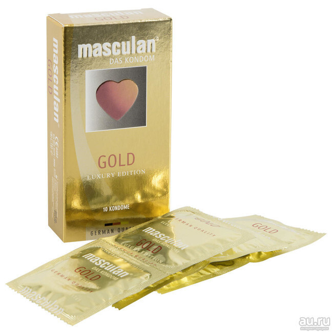 Презервативы 'GOLD' Masculan — это не просто защита, а особое настроение. Элегантный золотой цвет и соблазнительный аромат ванили создают атмосферу роскоши.