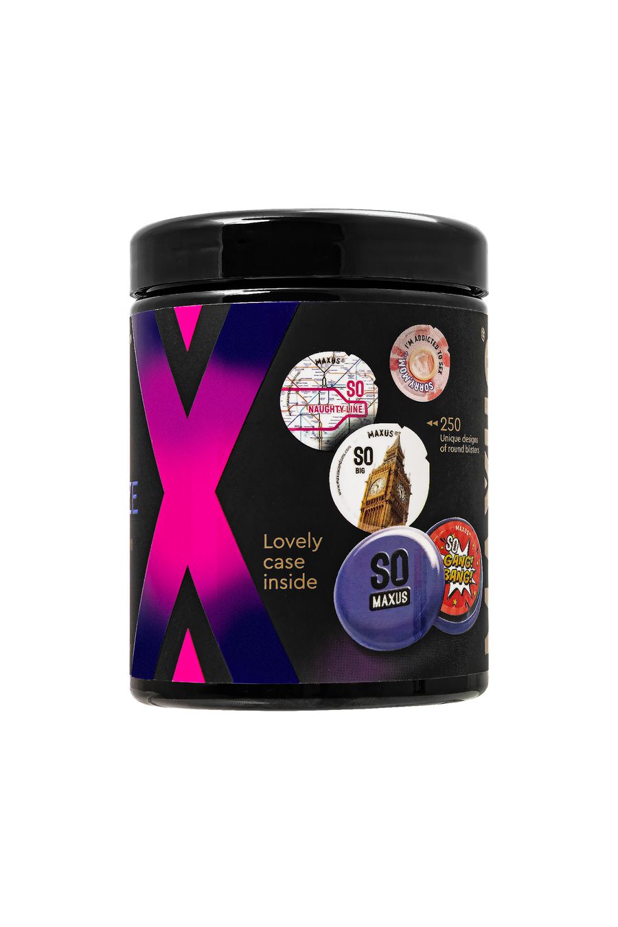 В упаковке вы найдете 15 индивидуально упакованных презервативов в стильных блистерах с уникальным дизайном. Все они надежно защищены прочной металлической банкой с герметичной крышкой, что гарантирует сохранность изделий и удобство их переноски или хранения.