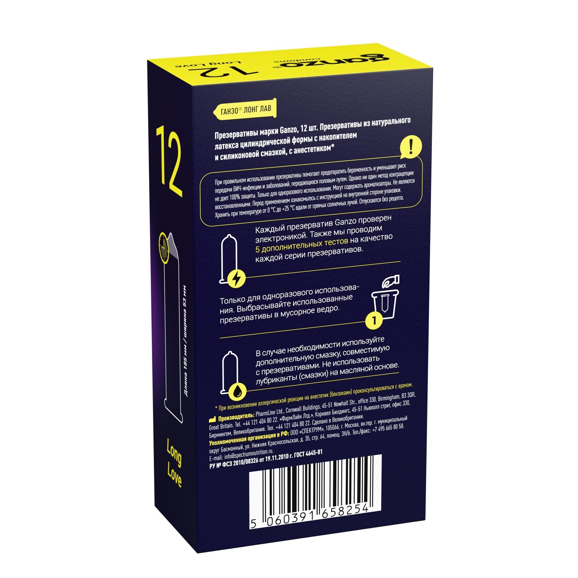 Презервативы 'Ganzo Long Love' с анестетиком, 12 штук, латекс, длина 18 см