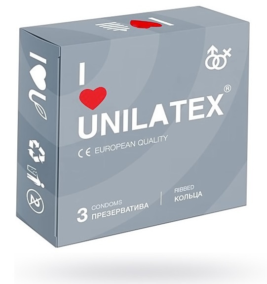 Презервативы Unilatex Ribbed ребристые, 3 шт, латекс, длина 19см