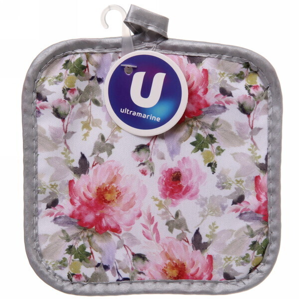 Прихватка с петлей, защита от ожогов, цветы 17х17см, полиэстер, квадратная, кант серая, «Пионы»