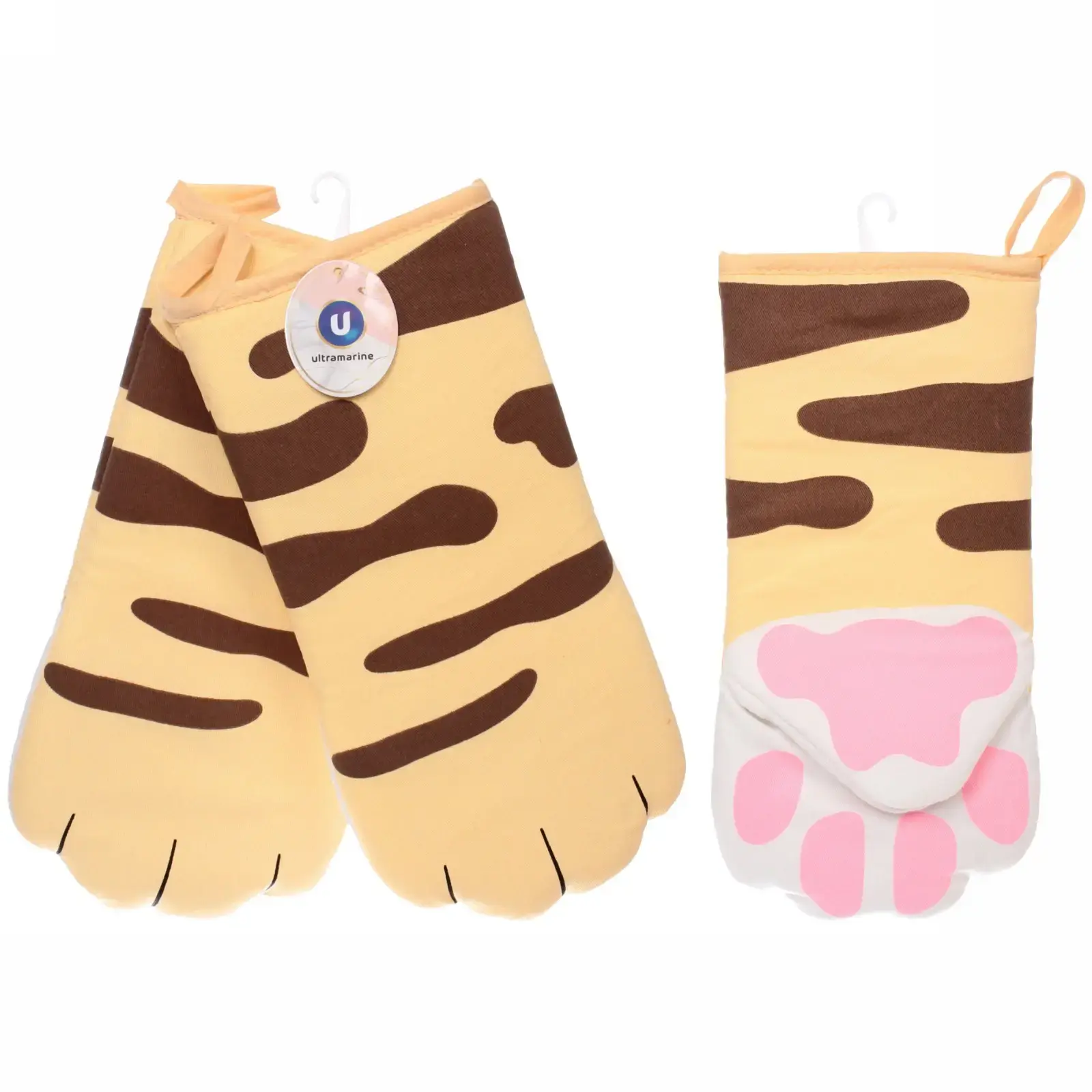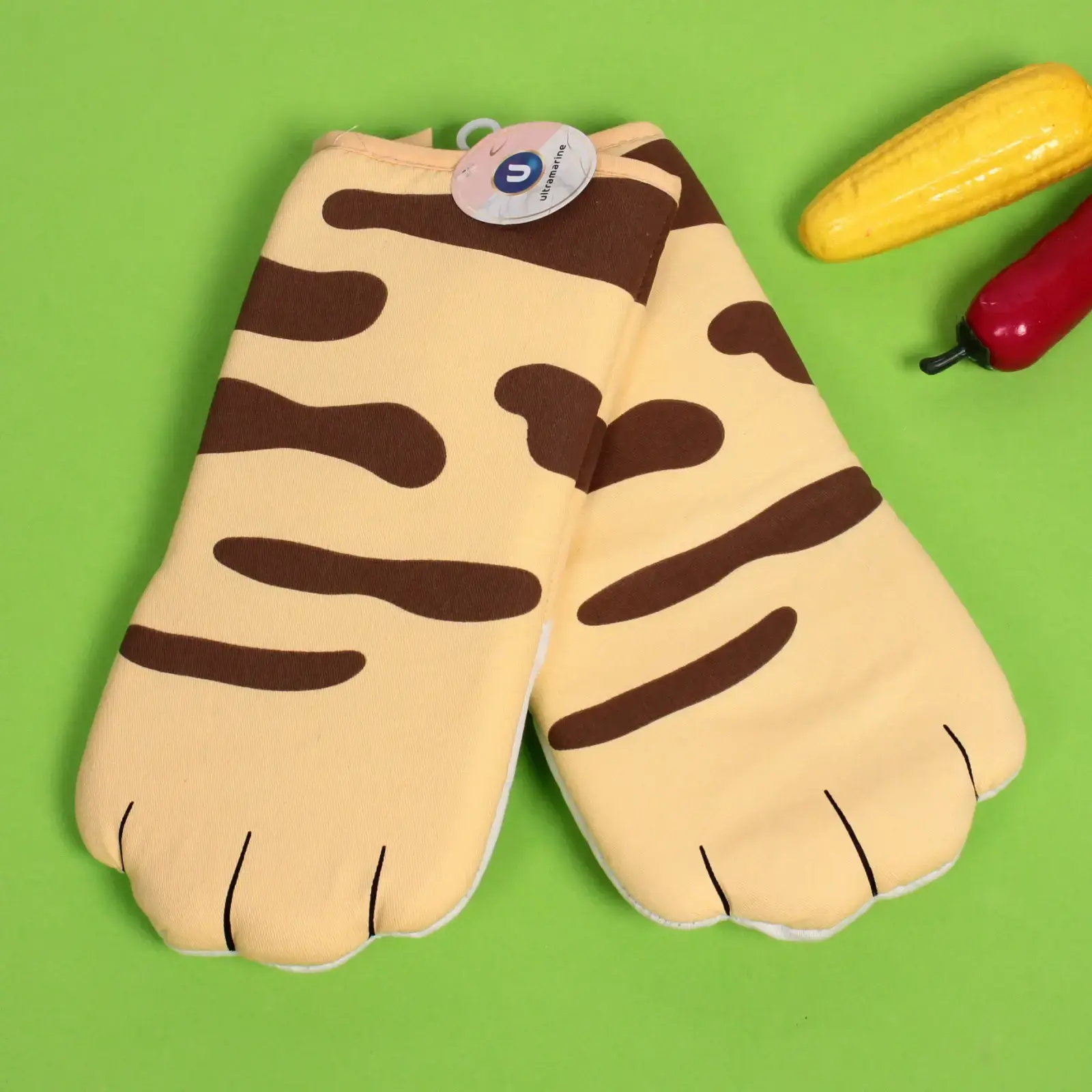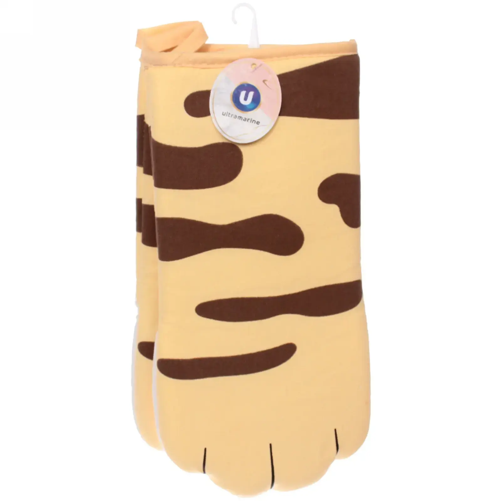Мягкие прихватки в форме звериных лапок сочетают практичность и оригинальный дизайн. Термостойкий полиэстер надежно защищает от горячих поверхностей, а игривый принт создаёт уютную атмосферу во время готовки.