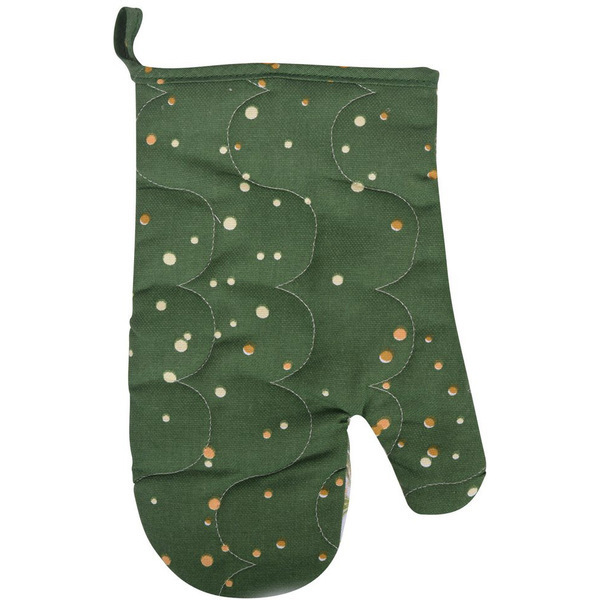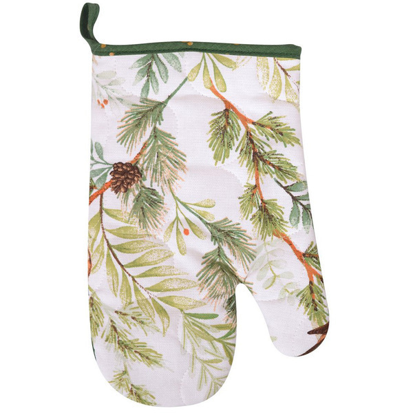 Эта прихватка-рукавица станет незаменимым помощником на вашей кухне, обеспечивая надежную защиту рук от ожогов при работе с горячими предметами. Стильный дизайн с изображением зеленых листьев и шишек не только выполняет свою функциональную роль, но и добавляет уют в интерьер вашей кухни.