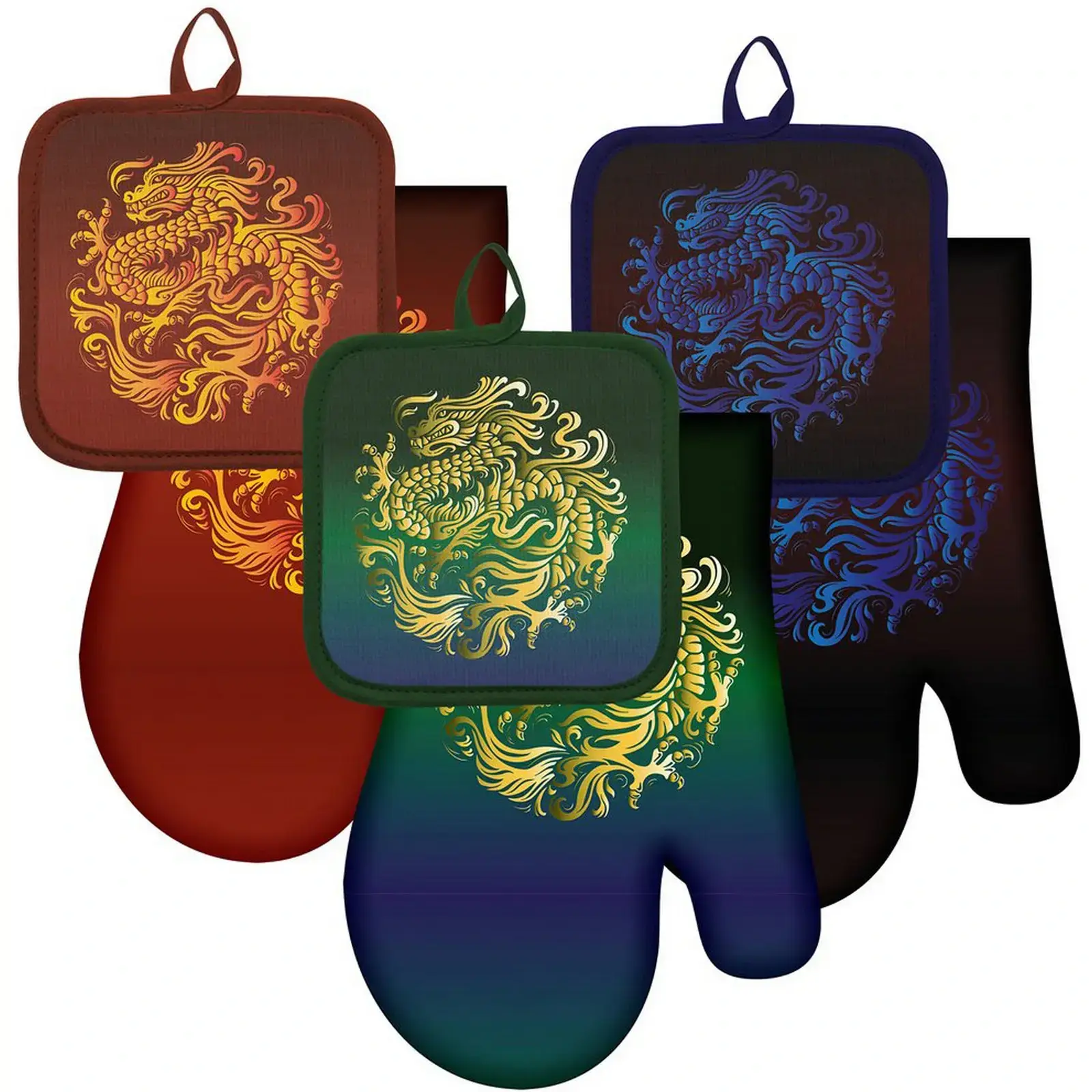 Прихватка с рукавицей «Лунный Дракон» — это идеальное сочетание эстетики и практичности. Эти аксессуары не только защищают ваши руки от горячих предметов, но и добавляют изюминку в интерьер вашей кухни. Яркий и оригинальный дизайн с изображением дракона подчеркнет индивидуальность хозяйки и создаст уютную атмосферу.