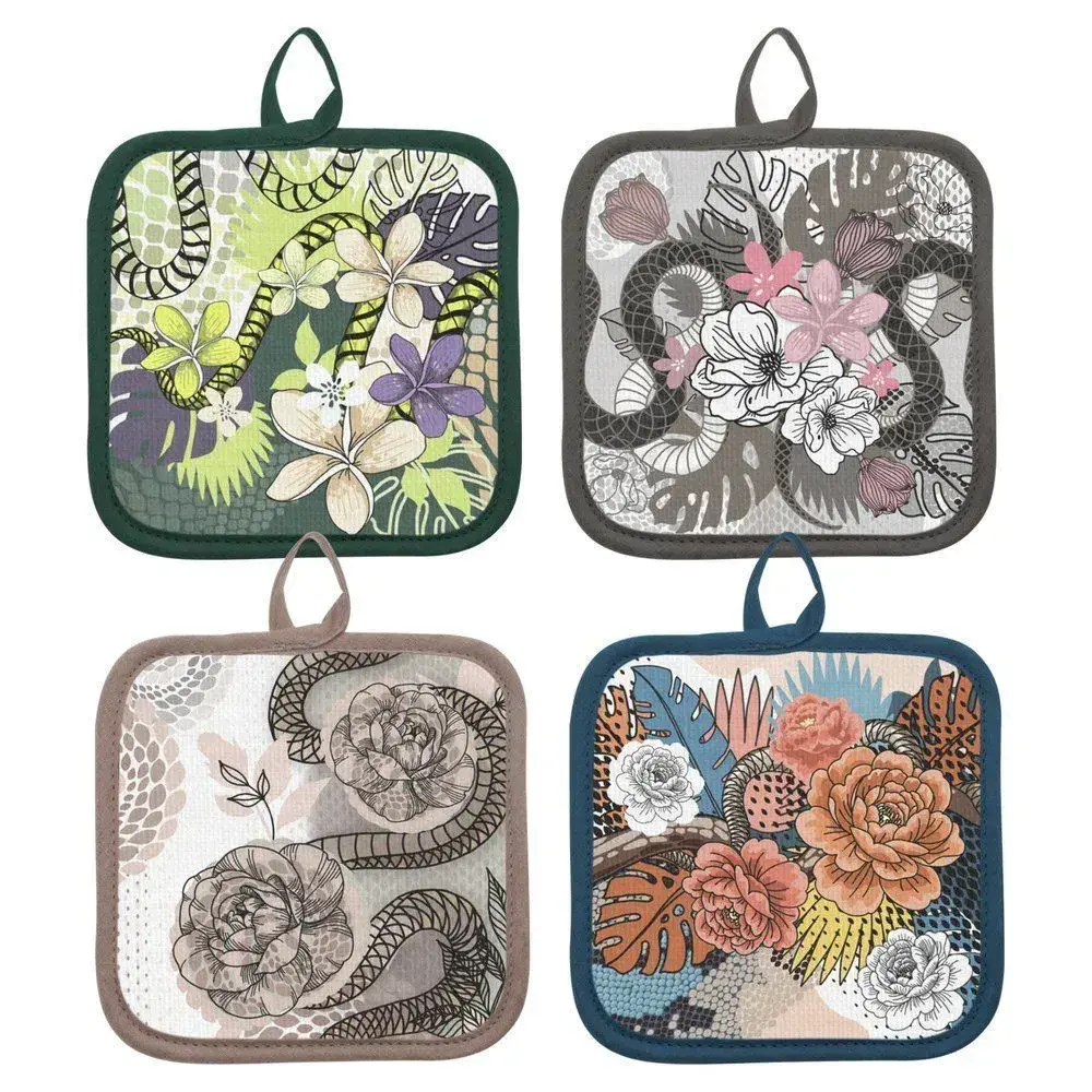 Термостойкая прихватка с уникальными ботаническими принтами превратит рутину готовки в эстетическое удовольствие. Эргономичный размер 17 см обеспечивает надежный захват горячей посуды, а плотная структура материала защищает от ожогов.