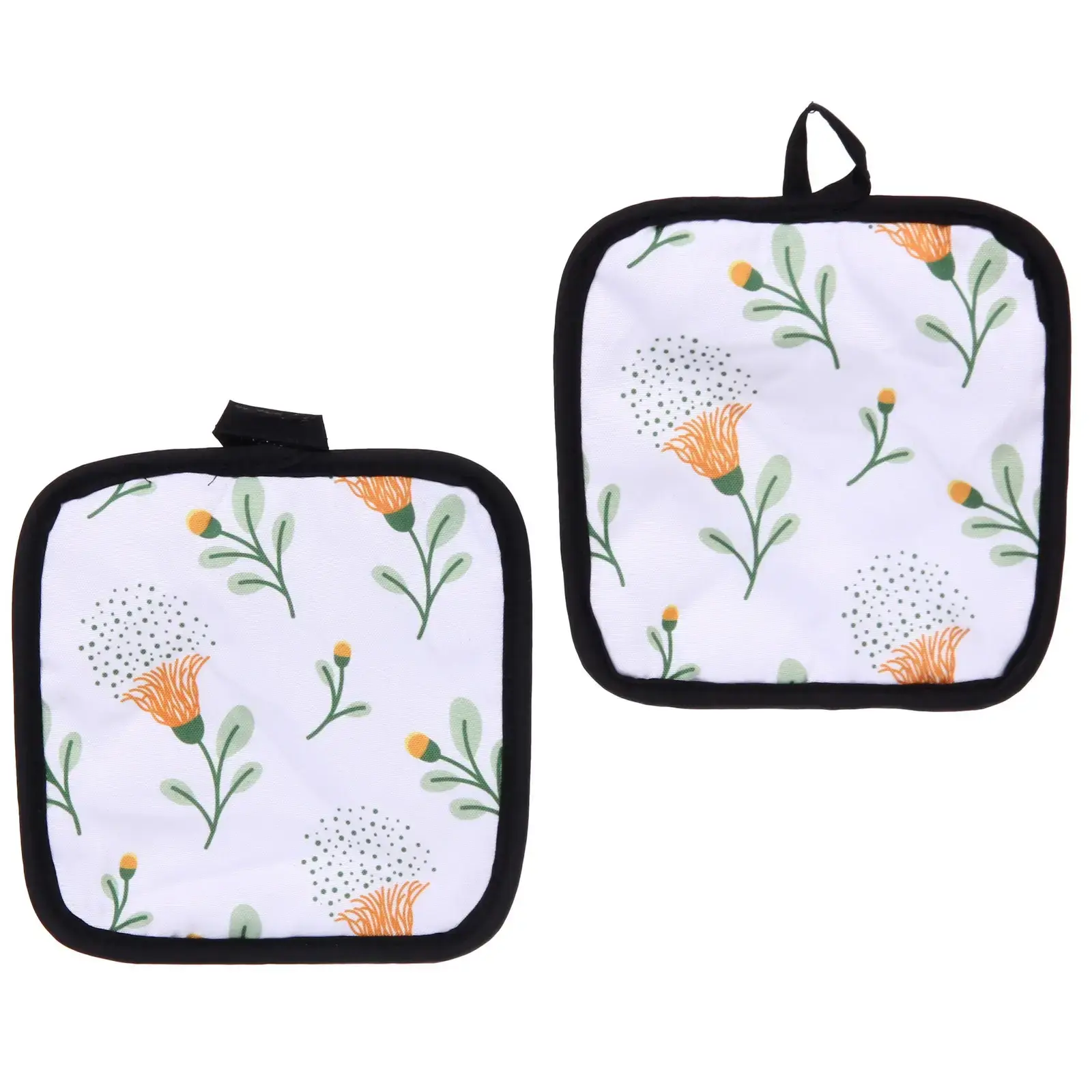 Прихватки кухонные "HERBAL" 2 шт, 17*17 см, полевые цветы, черная окантовка