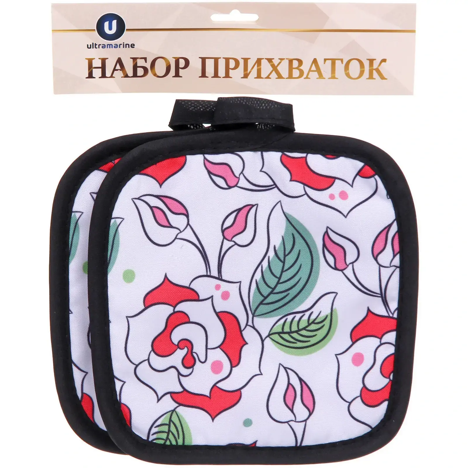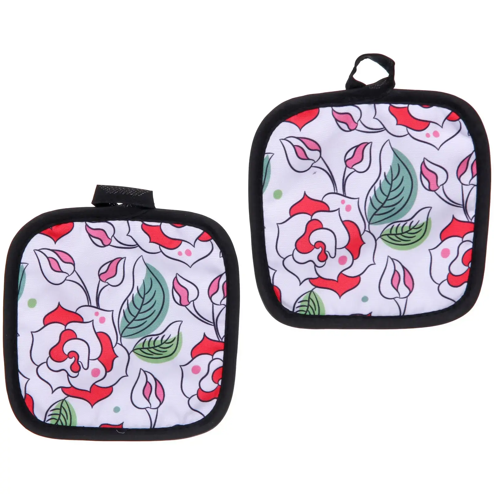 Размер каждой прихватки: 17х17 см. Декоративный дизайн с розами станет приятным дополнением вашей кухни.