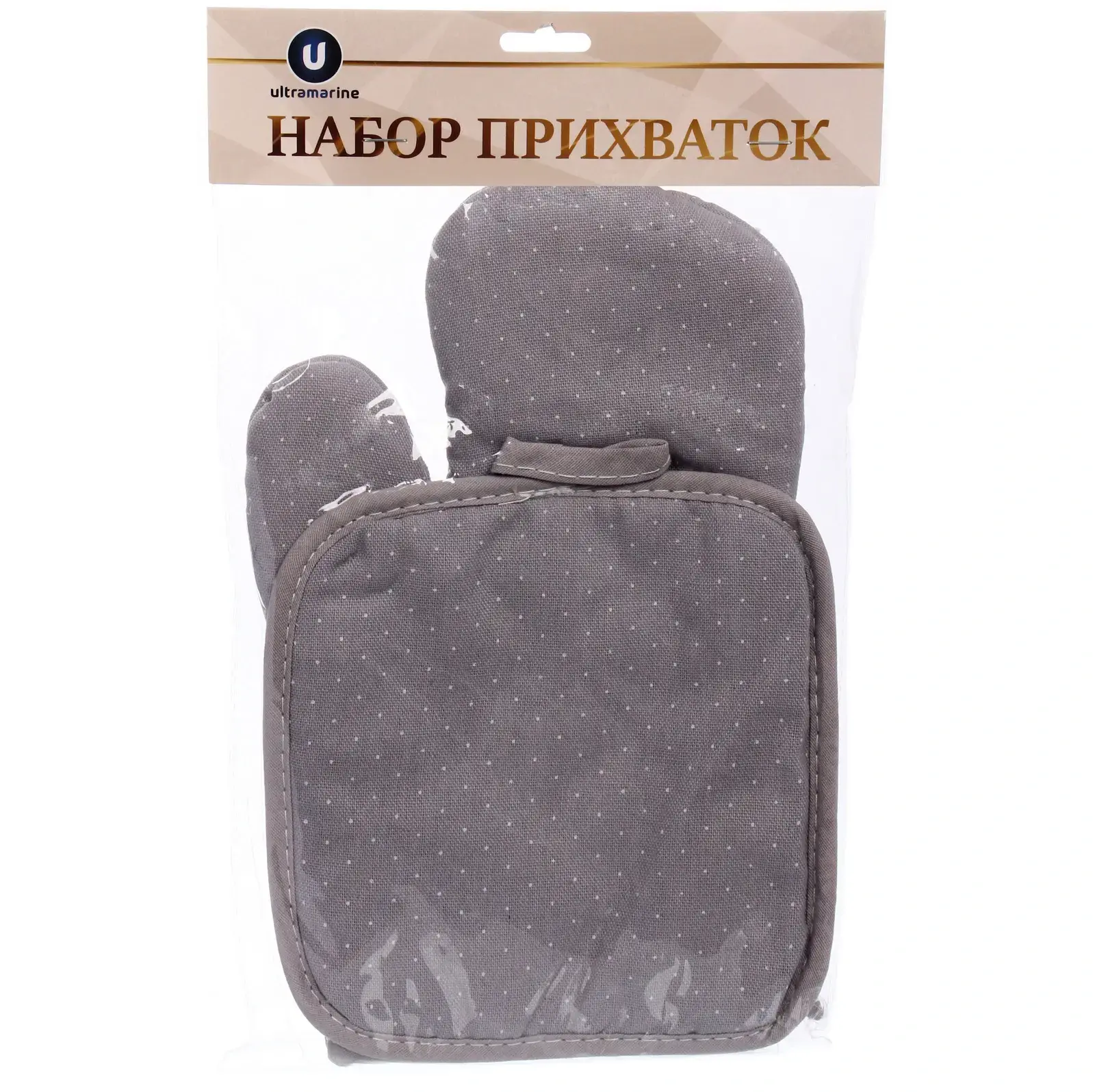 Обеспечьте безопасность и комфорт при приготовлении пищи с помощью набор из двух кухонных прихваток и варежки в современном стиле. Этот комплект подойдет для любой кухни и отлично защитит руки от горячих предметов, а мягкий материал обеспечивает долговечность и удобство использования.