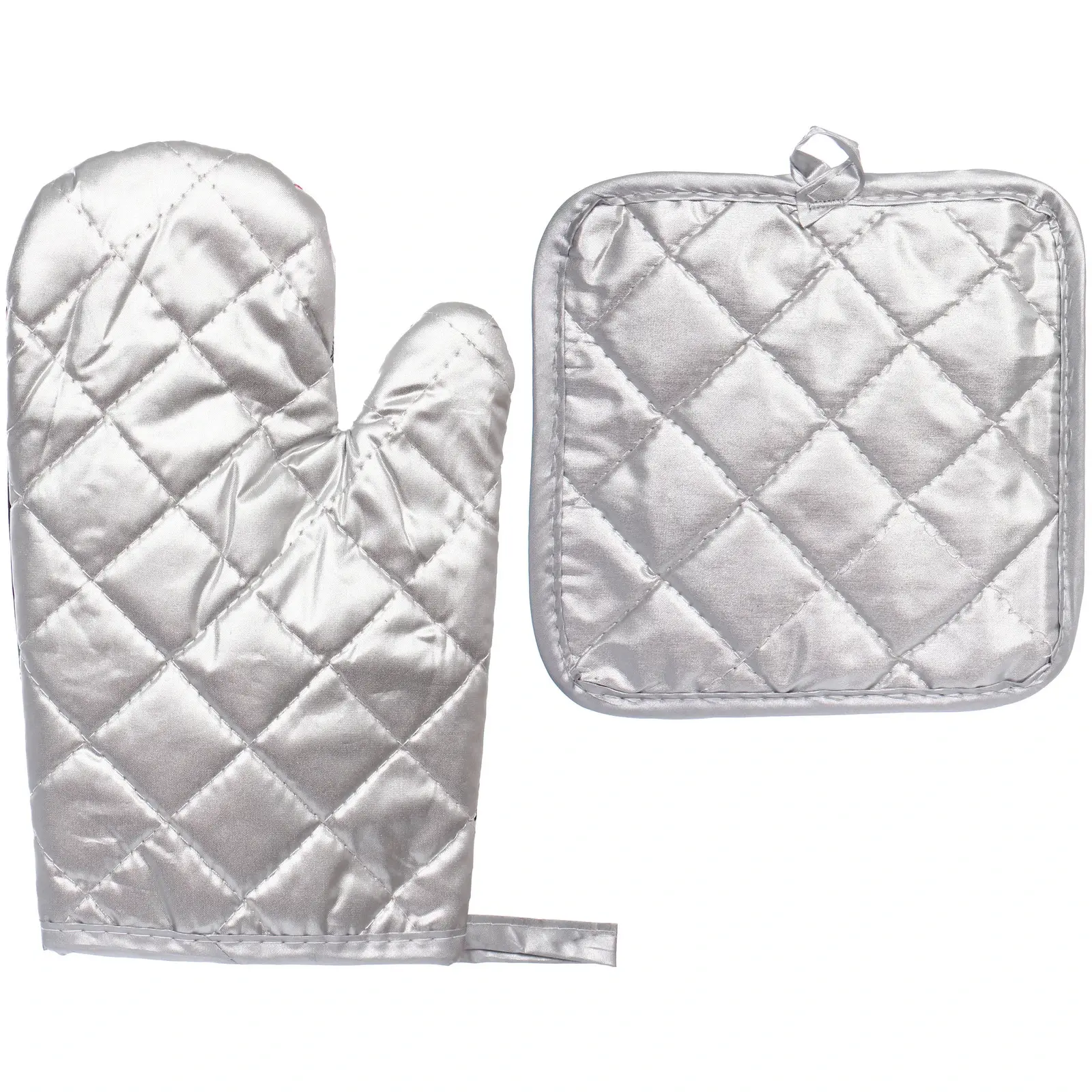 Функциональность: В набор входит одна прихватка и одна варежка, выполненные из 100% полиэстера, что обеспечивает долгий срок службы и устойчивость к высоким температурам. Размеры изделия — 25,5x16 см (прихватка) и 17x17 см (варежка). Благодаря классической форме и петлям для подвешивания, они удобно хранятся и всегда под рукой.