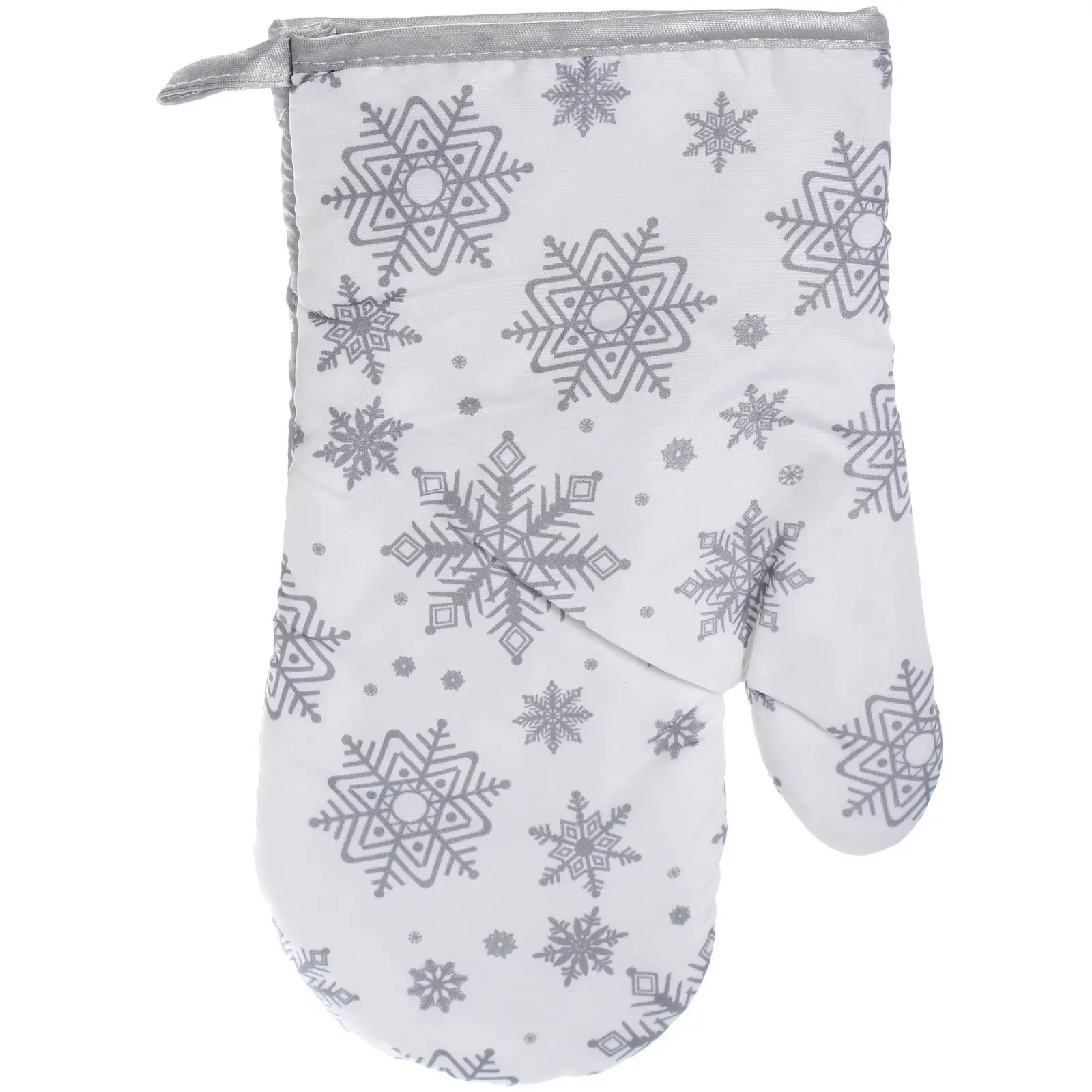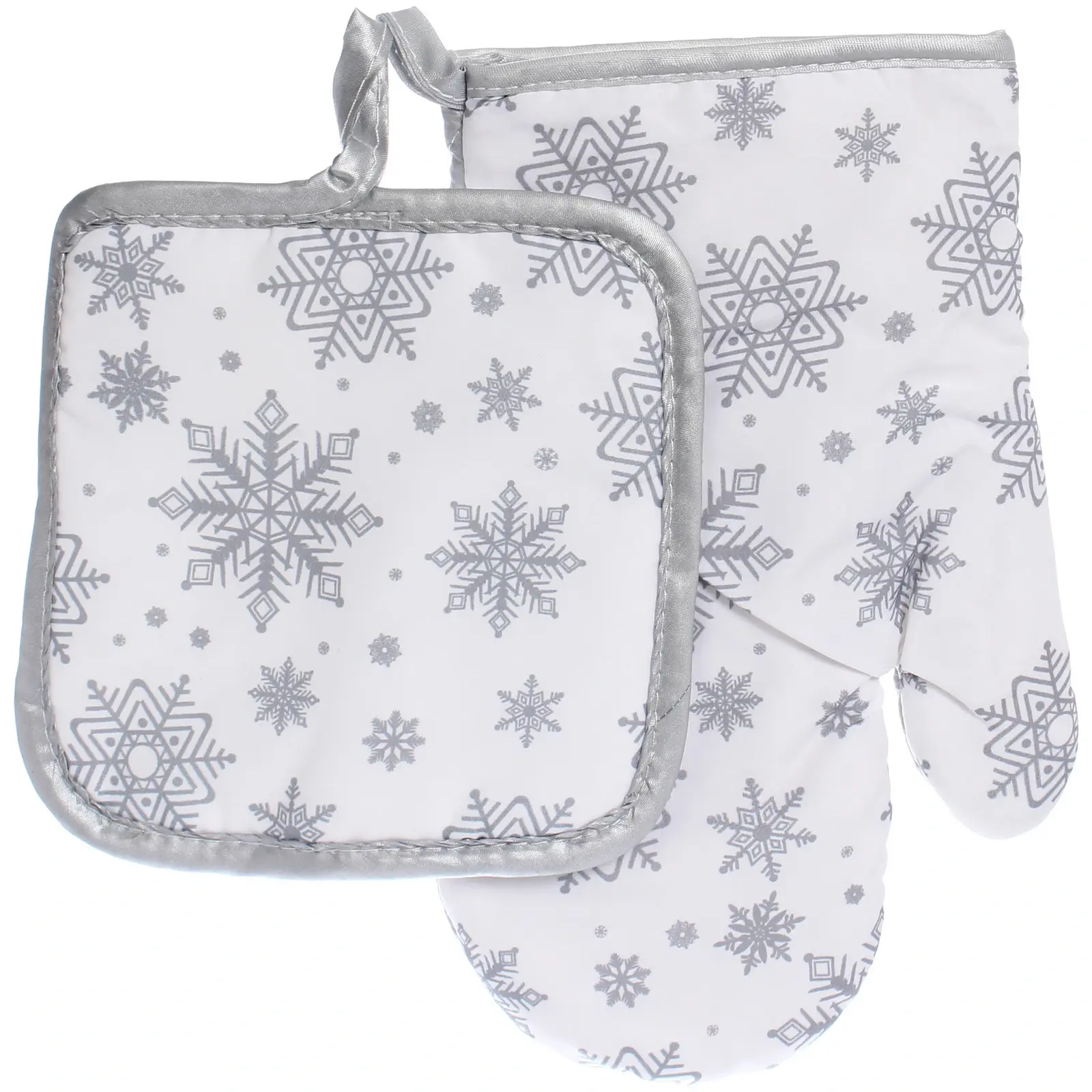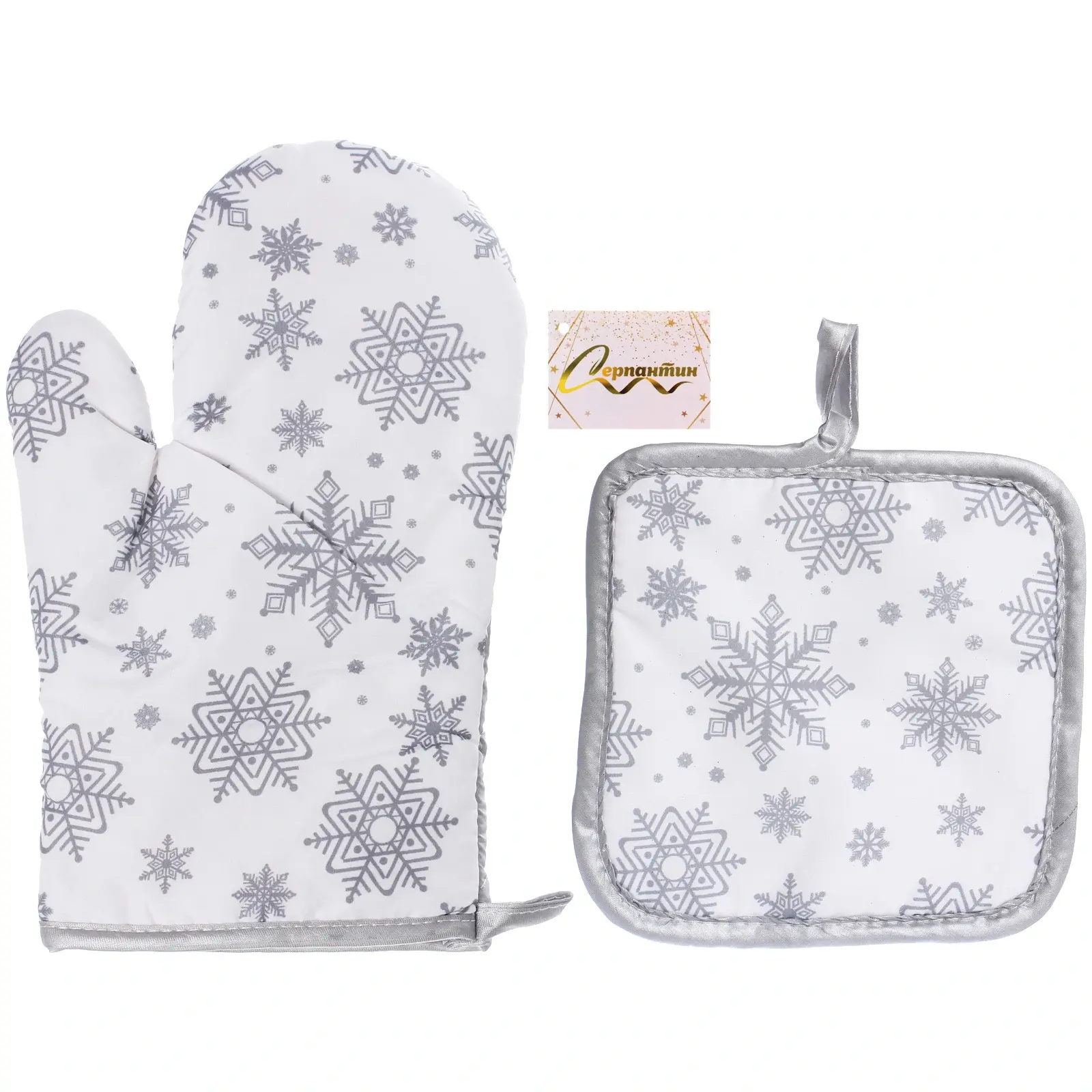 Прихватки и варежка с нежным снежинками создадут праздничное настроение и обеспечат надежную защиту при работе на кухне.