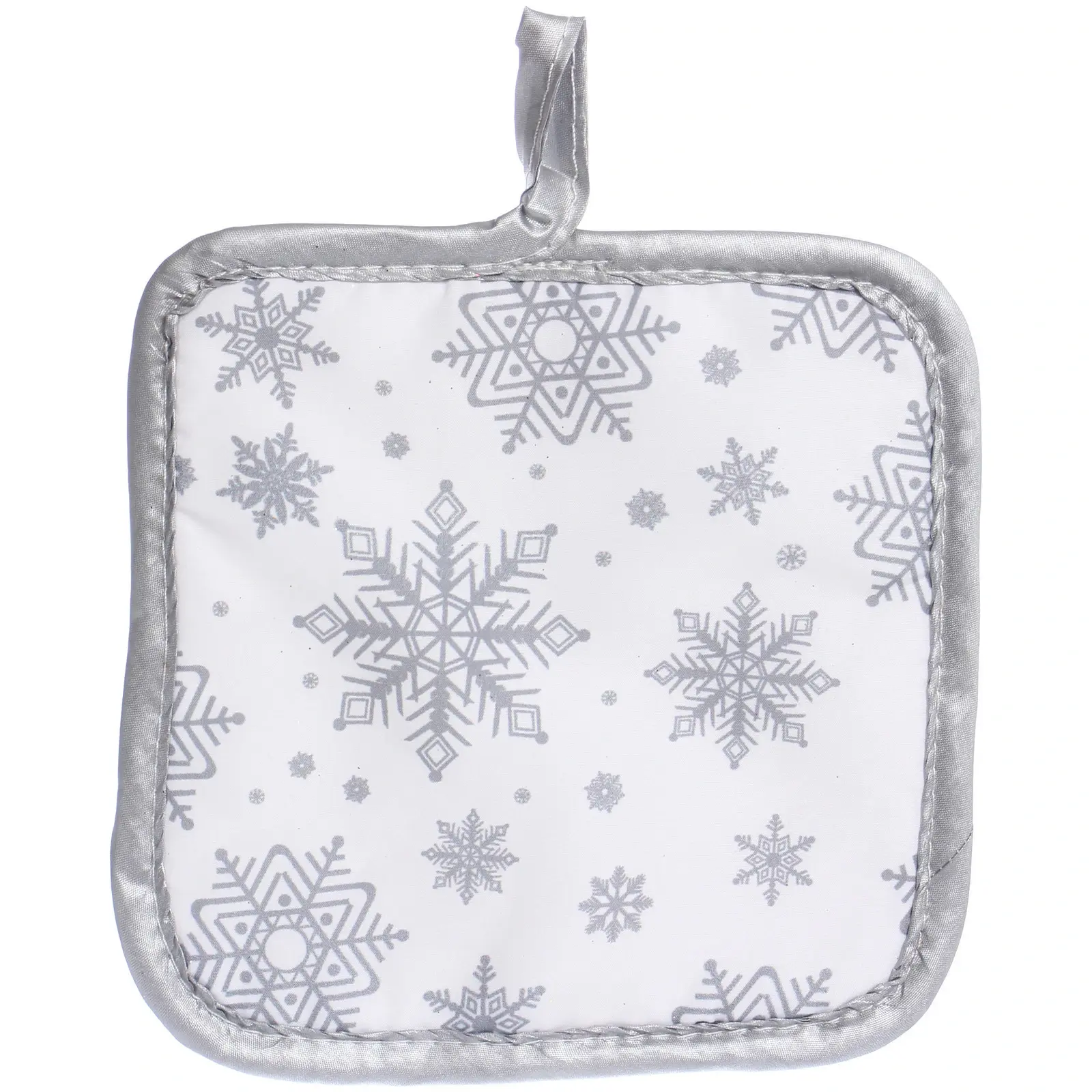 Набор прихваток 'Снежинка' серебряный, 17.5х17.5 и 27х17см, полиэстер
