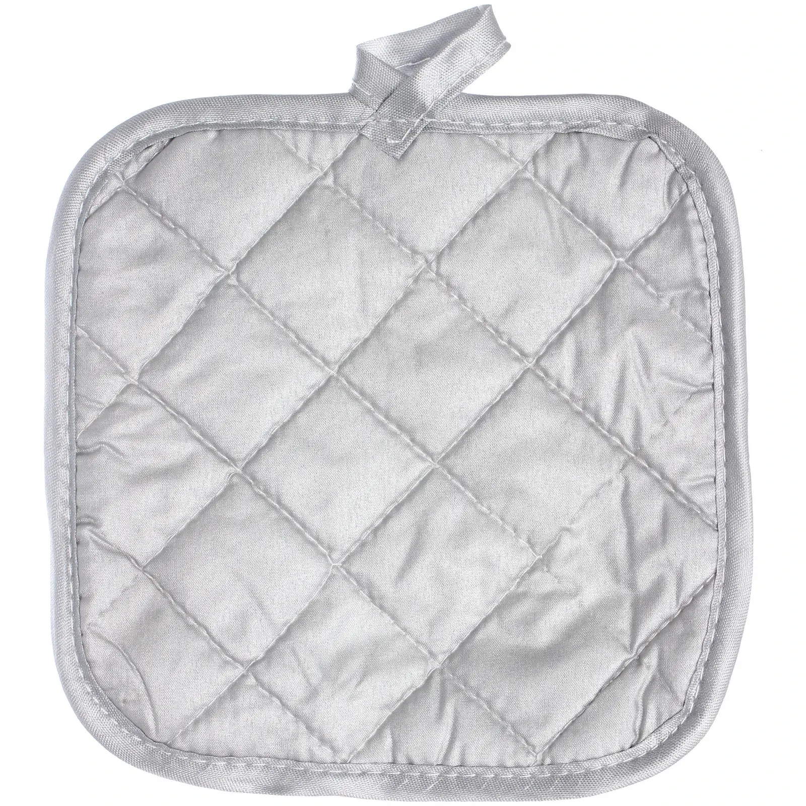 Прихватки оснащены удобными петлями для хранения. Серебристая окантовка не только украшает изделие, но и усиливает его прочность.