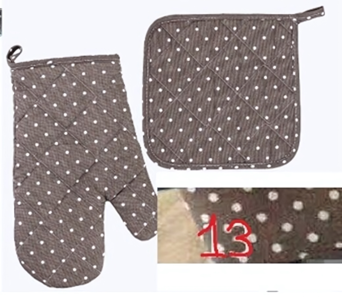 Размер прихватки составляет 13 см, что делает ее компактной и удобной для хранения. Коричневый цвет с белыми горошками и черная окантовка придают ей современный и стильный вид. Эта прихватка станет отличным дополнением к вашему кухонному текстилю и поможет создать уютную атмосферу во время готовки.