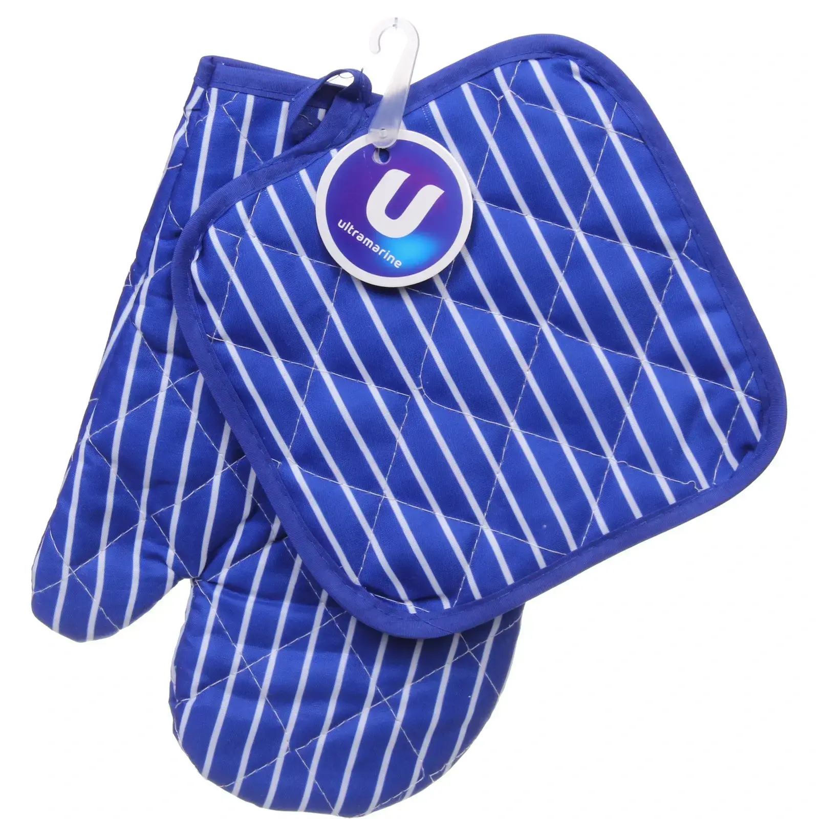 Выбирая прихватку с рукавичкой «Патио», вы получаете не только стильный, но и функциональный аксессуар. Синяя цветовая гамма с белыми диагональными полосами добавляет изюминку в интерьер вашей кухни. Стеганая текстура не только красиво выглядит, но и обеспечивает дополнительную теплоизоляцию, что делает использование этих аксессуаров еще более безопасным.