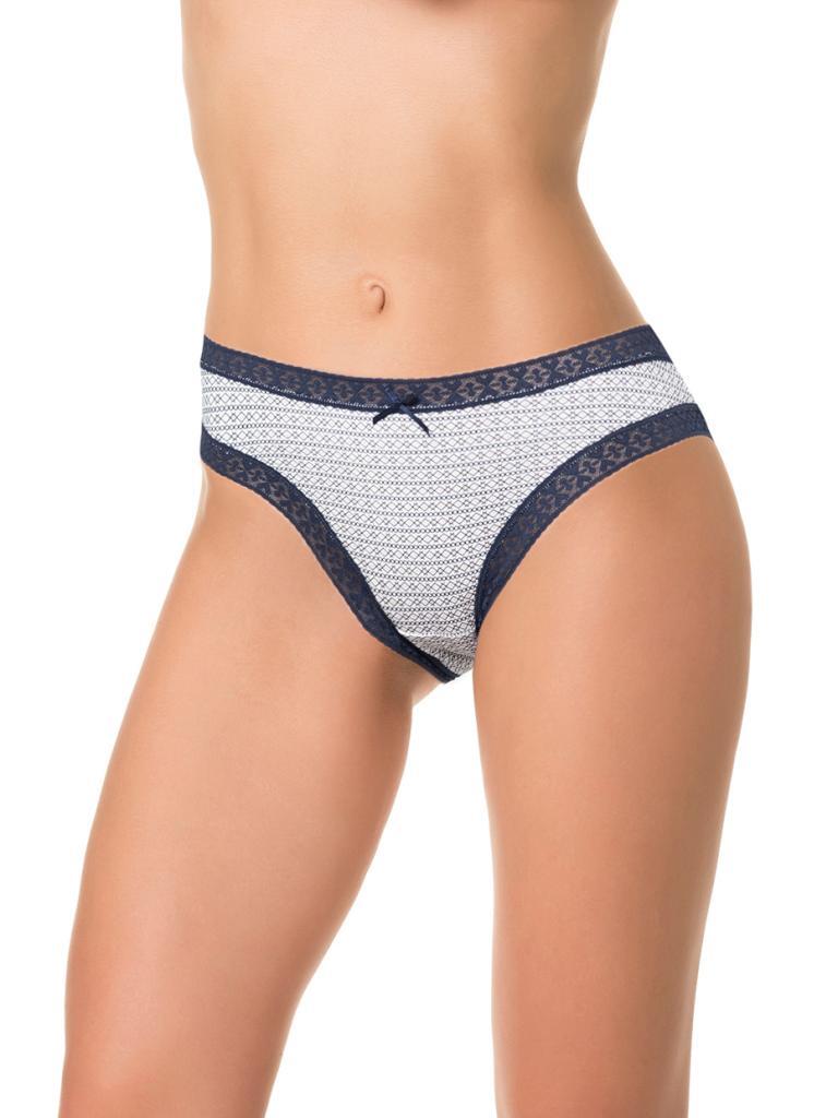 Трусики-слипы с геометрическим принтом, хлопок 95%, контрастная кружевная резинка, размер M, белый с синим