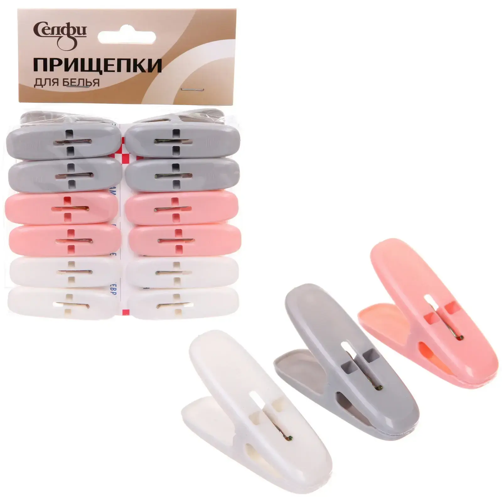 Прищепки бельевые «Эда - Хоум», 12 шт, пластик, серый/розовый/белый, рифленый захват