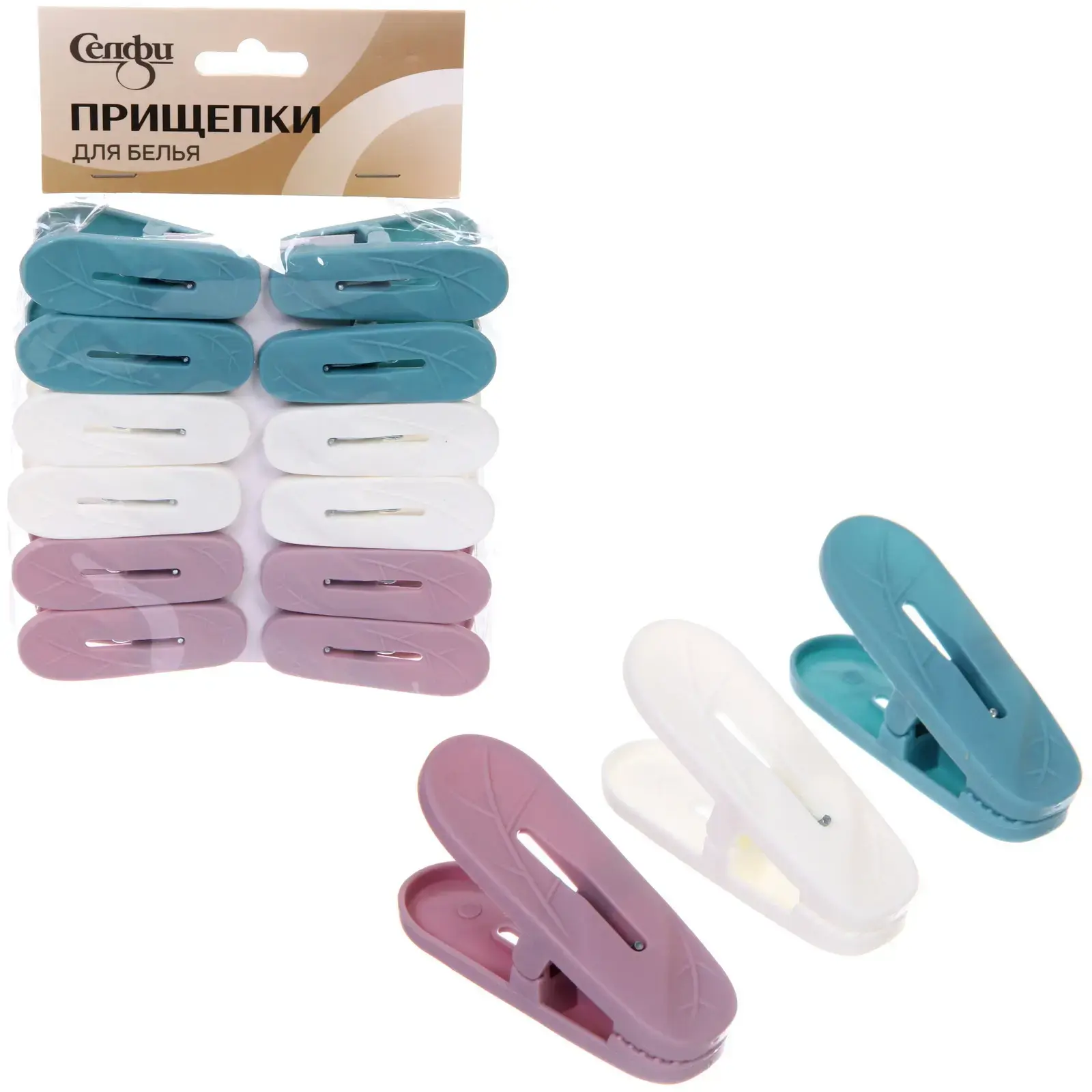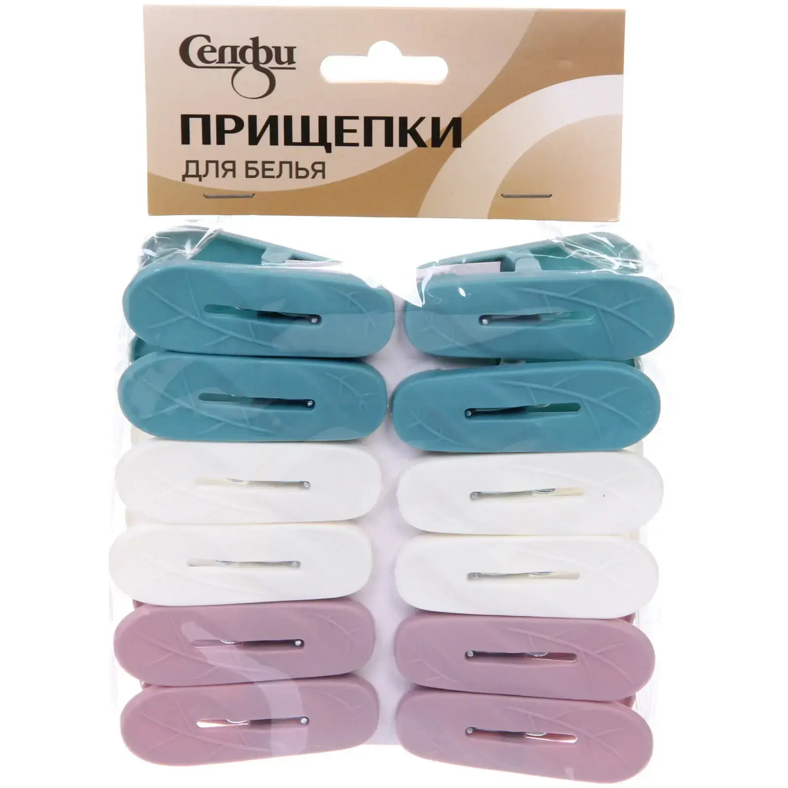 Каждая прищепка имеет стандартный размер, что делает их универсальными для любого белья. Упаковка содержит 12 штук, размещенных в три ряда по четыре прищепки, что удобно для хранения. Эти прищепки не только функциональны, но и стильны, что делает их отличным дополнением к вашему дому.