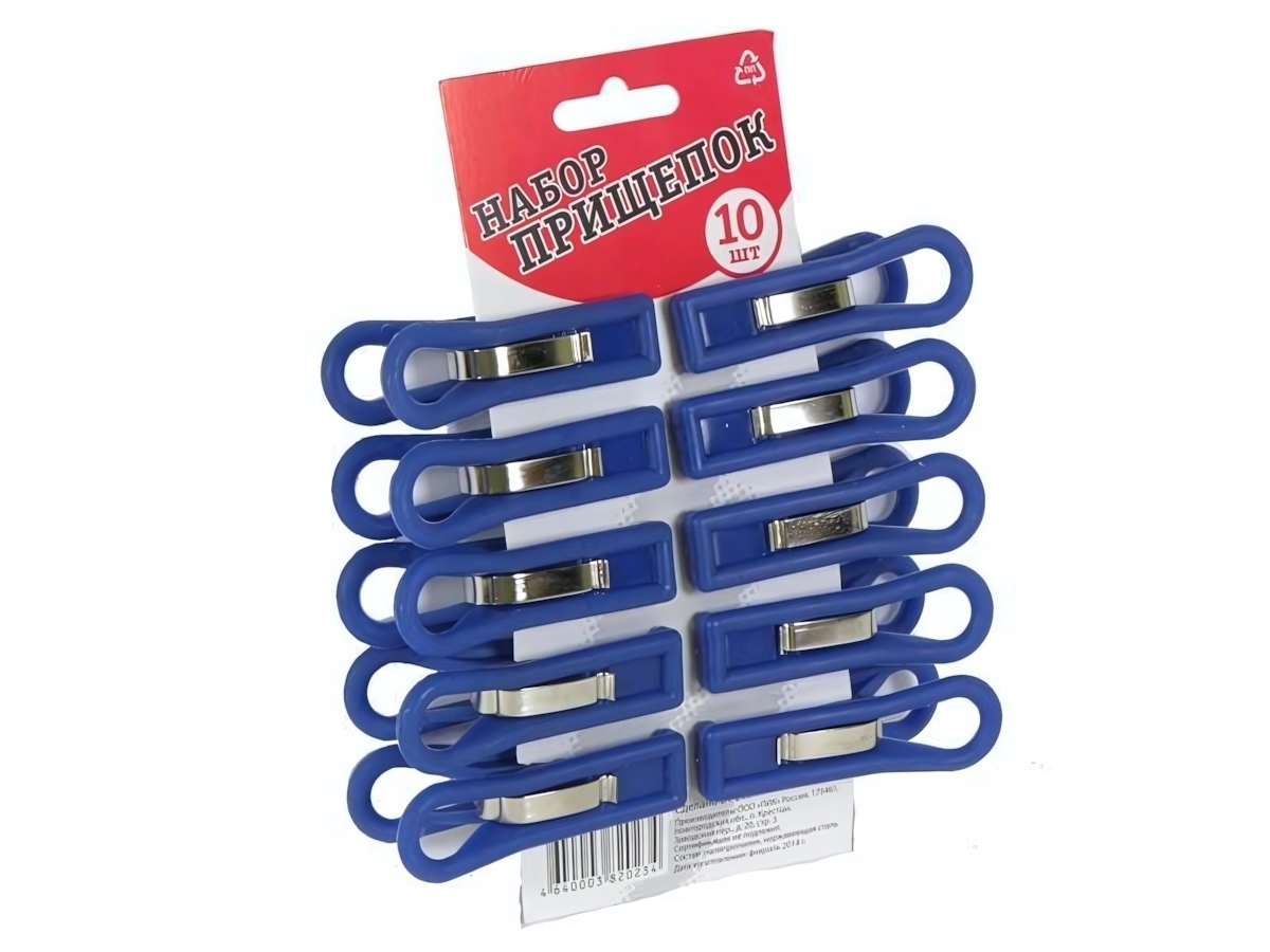 Прищепки пластмассовые 'Набор 10шт', синие, с металлическим зажимом