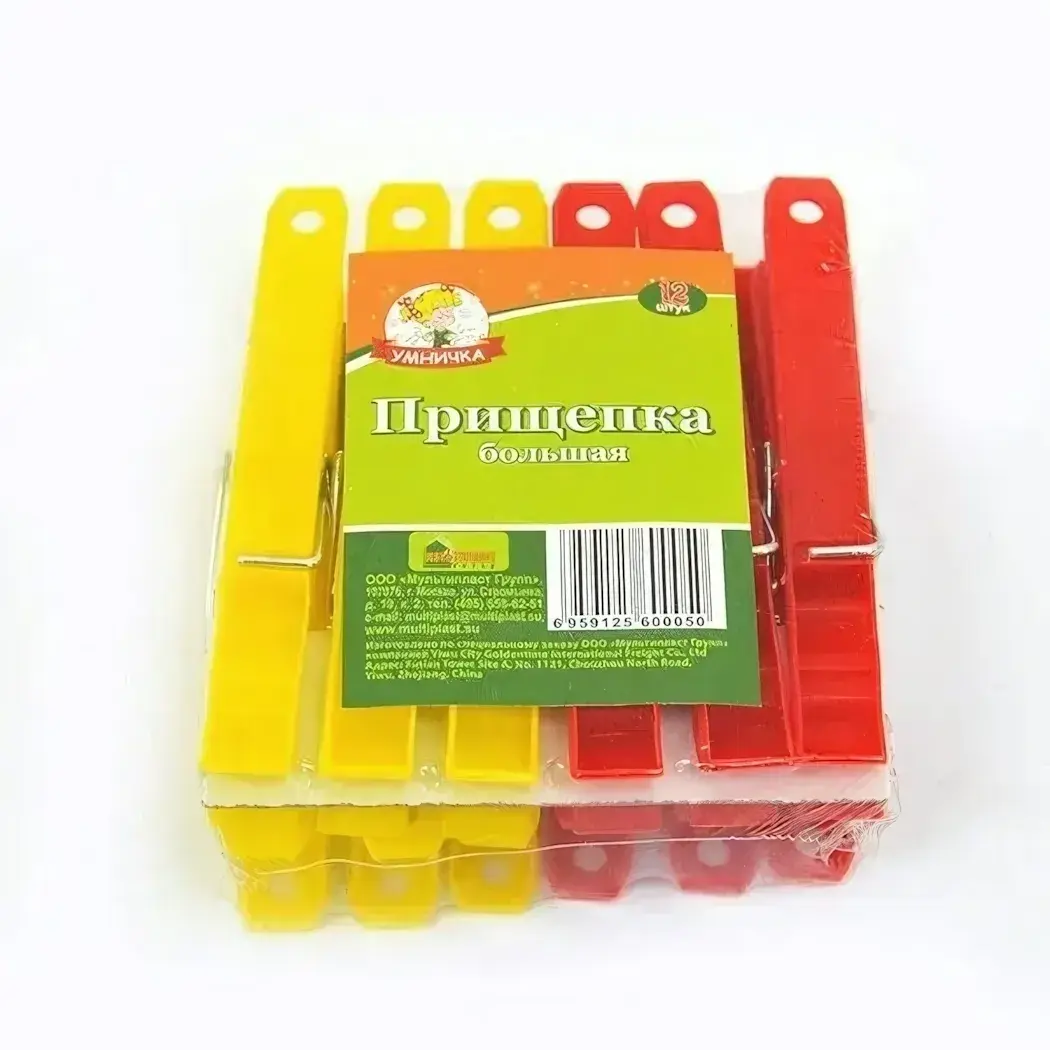 Прищепки пластиковые большие 9см, набор 12шт, микс цветов (желтый, красный)