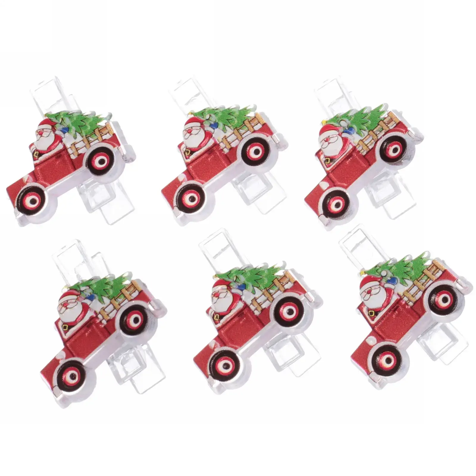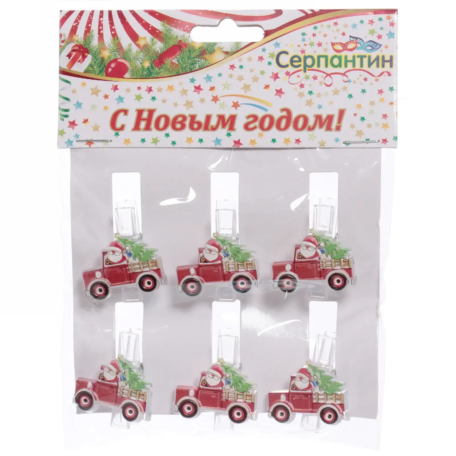 Набор из 6 декоративных прищепок в форме грузовиков с Дедом Морозом — идеальное решение для оригинального новогоднего оформления. Яркие акценты для вашего интерьера, подарков и праздничного декора.