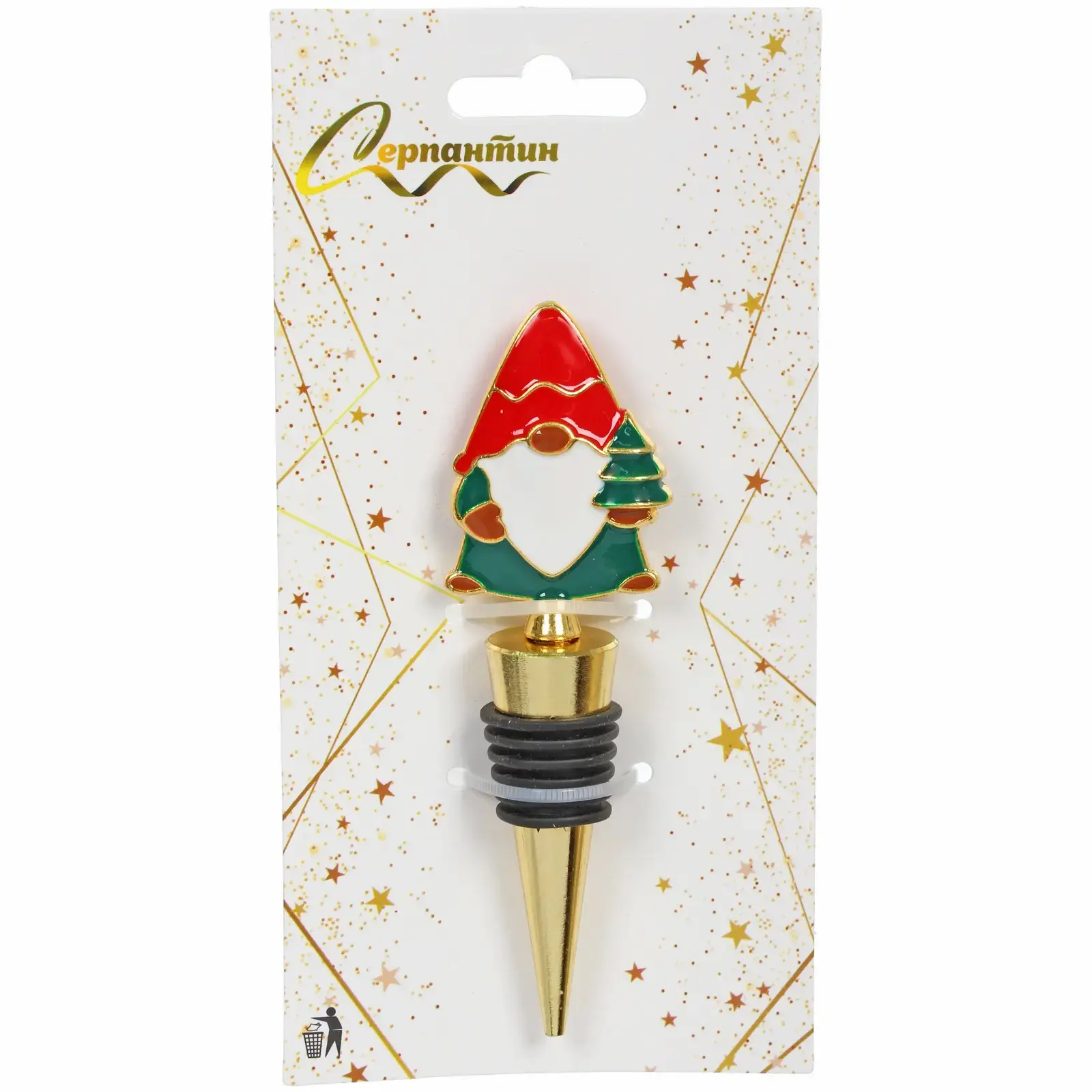 Пробка для бутылок "Дед Мороз", металл/резина, цвет в ассортименте