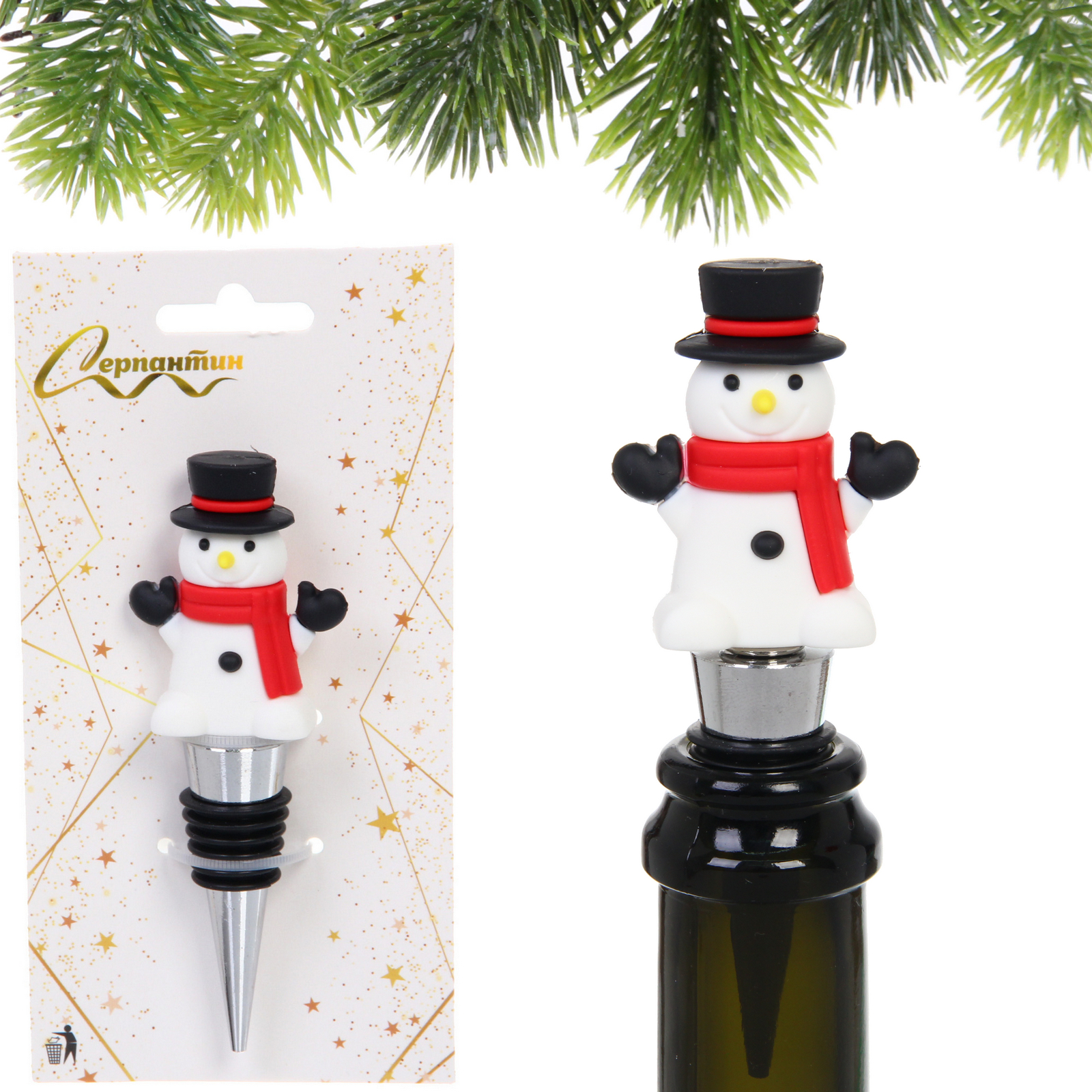 Создайте волшебную атмосферу новогоднего застолья с очаровательной пробкой в виде снеговика! Яркий аксессуар не только украсит бутылку, но и надежно сохранит вкус и аромат напитков благодаря герметичному уплотнению.