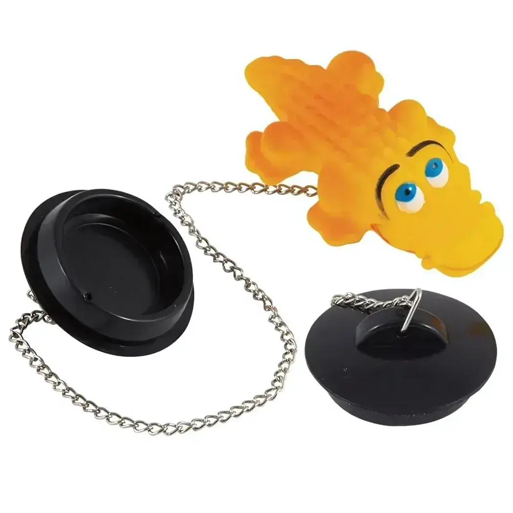 Резиновая основа обеспечивает герметичность даже при неровных поверхностях. Объемный декор в виде крокодила создает игривое настроение и маскирует технический элемент. Компактные размеры (диаметр 4.5 см) подходят для большинства сантехнических приборов.