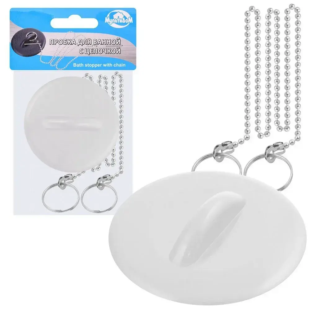Пробка для ванной «Уайт МГ34-5» с цепочкой, белая, металлический фиксатор, 2 крепления