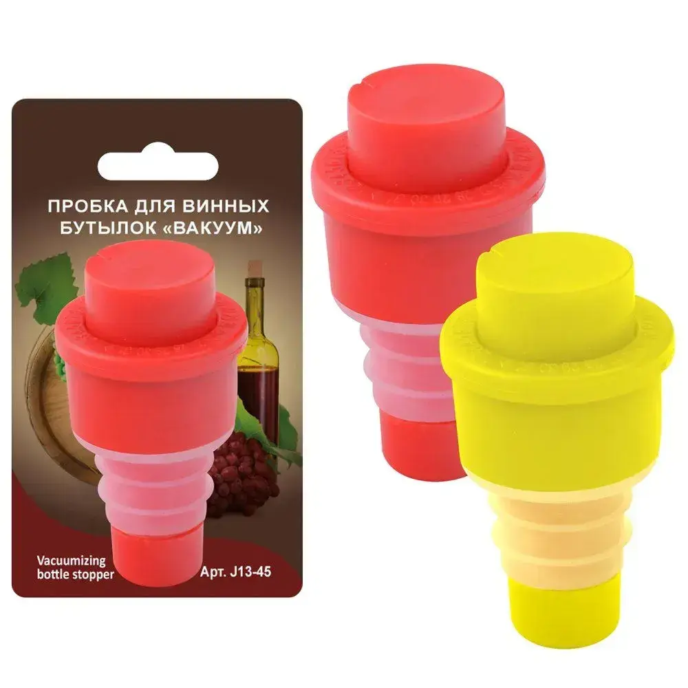 Пробка вакуумная для винных бутылок, пластик, цвет в ассортименте — 2 варианта
