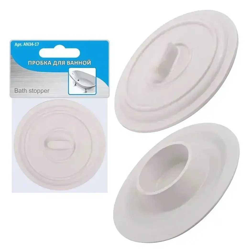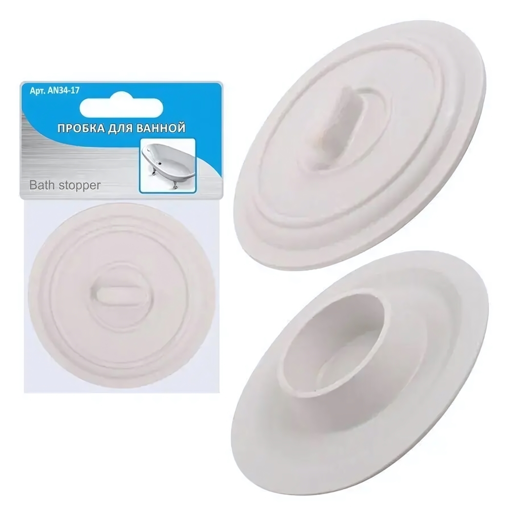 Пробка для ванной с регулируемым диаметром 38-55 мм, белый пластик, герметичность