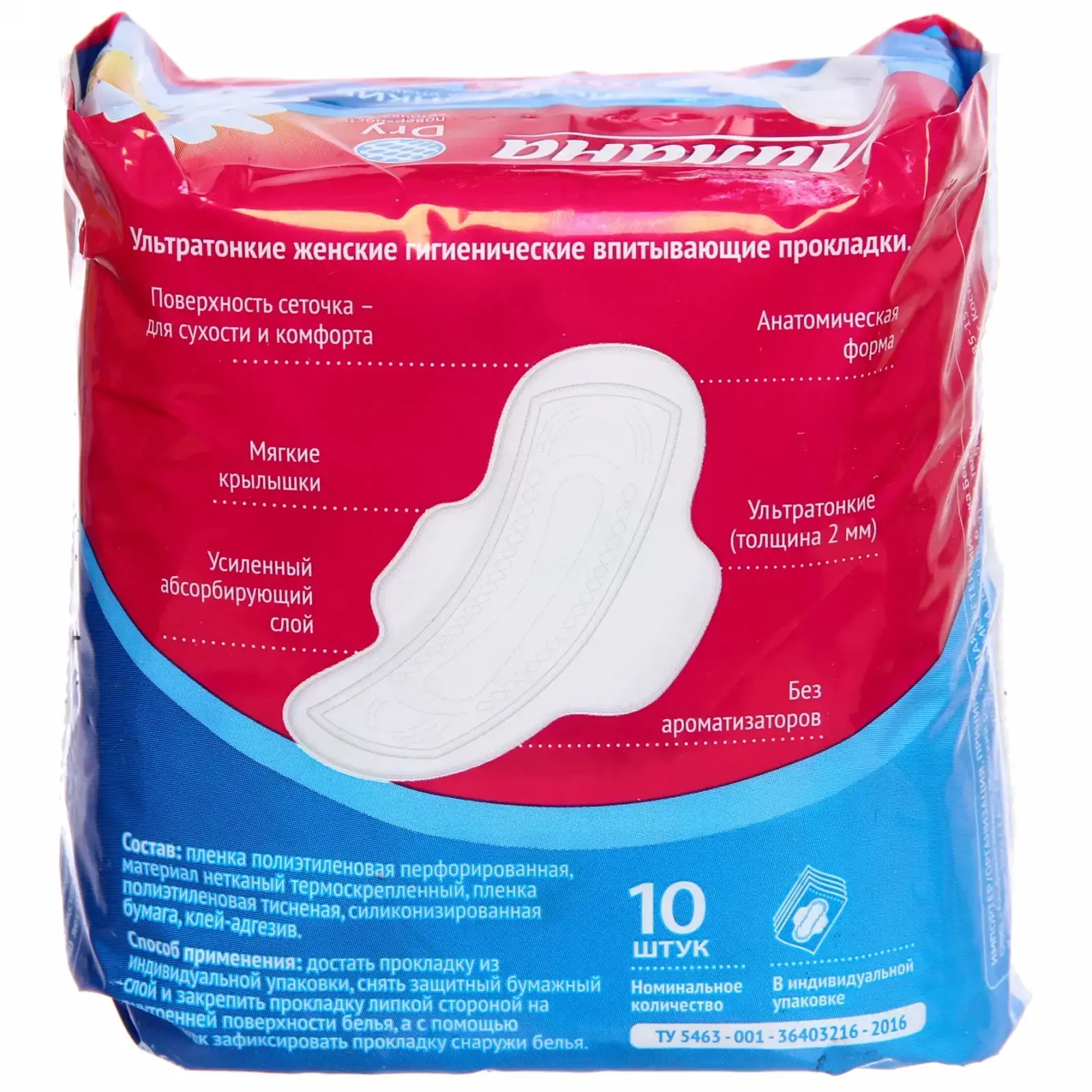 В упаковке содержится 10 штук прокладок, каждая из которых упакована индивидуально. Состав включает пленку полиэтиленовую перфорированную и нежный термоскрепленный материал, что обеспечивает мягкость и комфорт при использовании. Прокладки сертифицированы по нормативам, что гарантирует их высокое качество и безопасность.