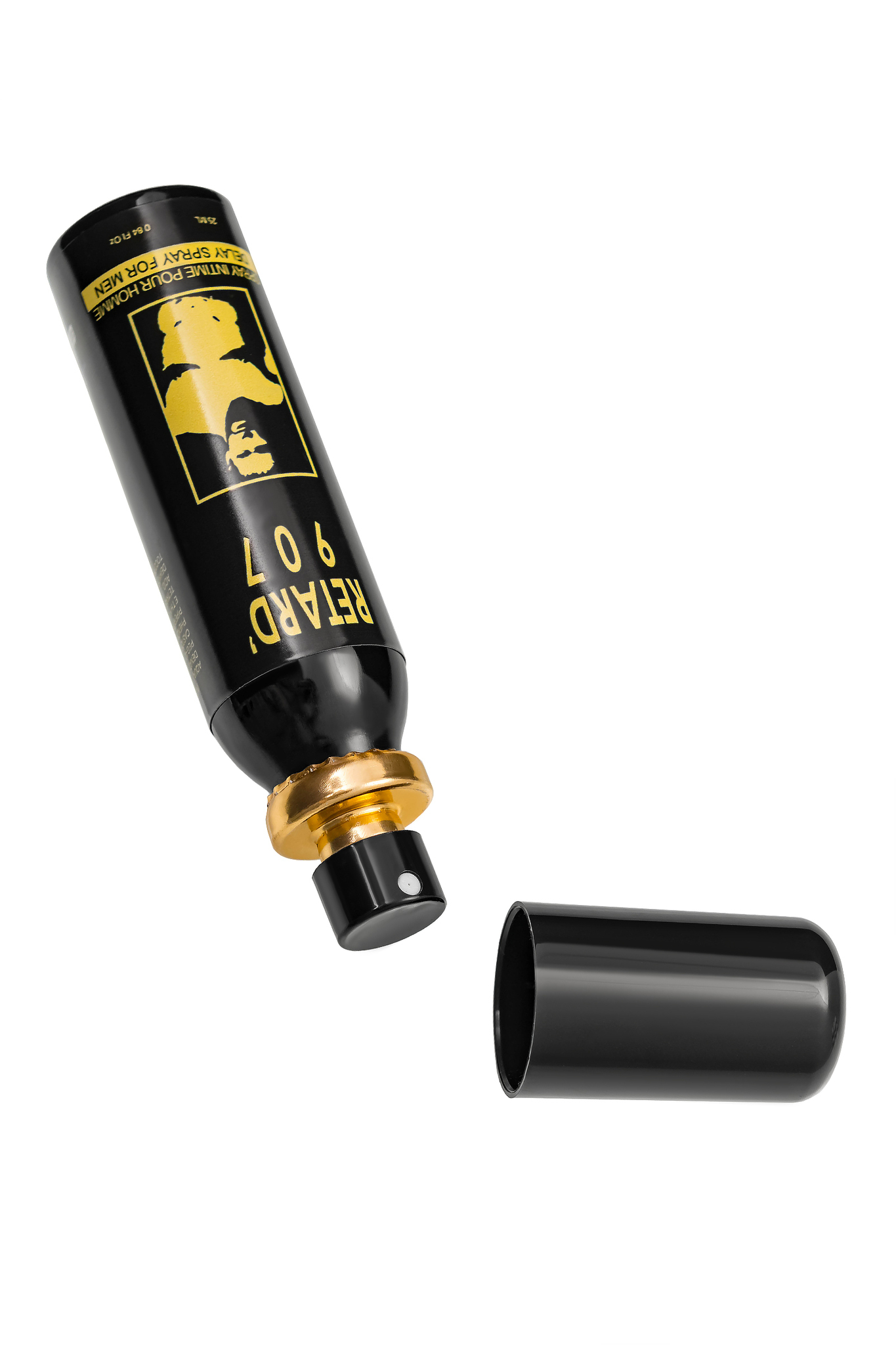 Объем флакона составляет 25 мл, что делает его компактным и удобным для хранения. Цилиндрическая форма флакона с черной упаковкой и золотыми надписями выглядит стильно и современно. Спрей легко помещается в сумке или кармане, что позволяет брать его с собой в поездки или на отдых.