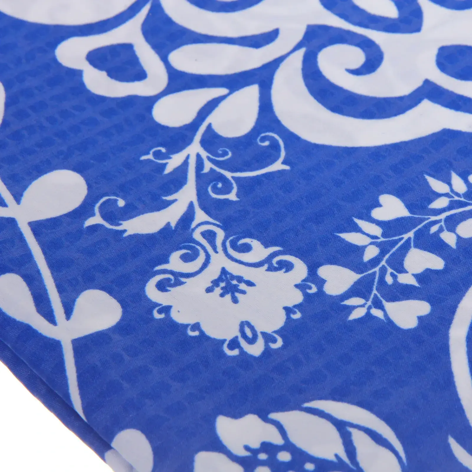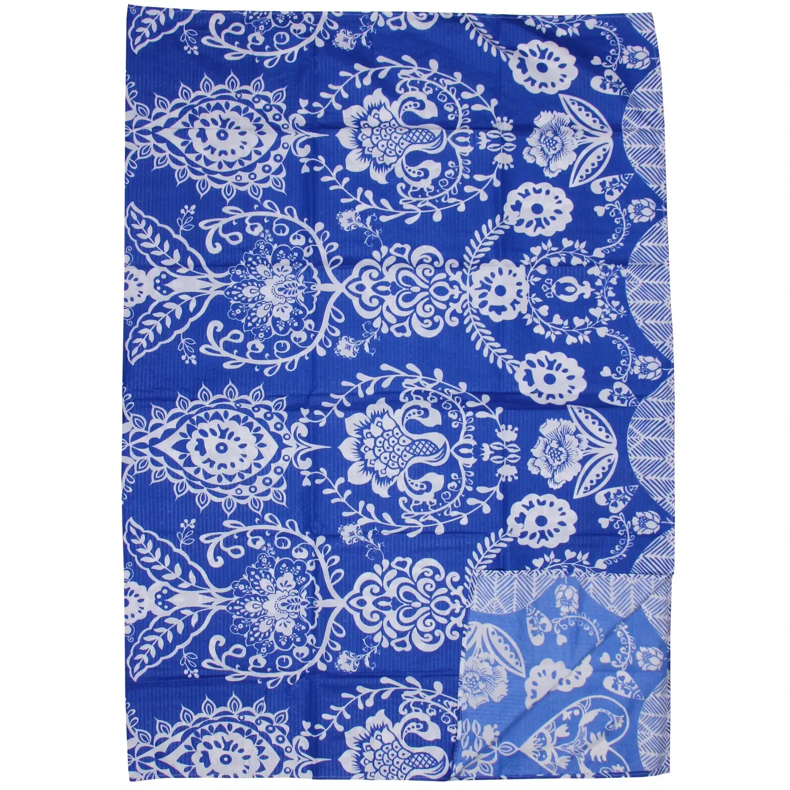 Размер простыни идеально подходит для стандартных односпальных кроватей. Материал 100% полиэстер обеспечивает легкость в уходе и долговечность. Яркий синий цвет с белыми узорами добавляет изысканности и стиля в ваш интерьер.