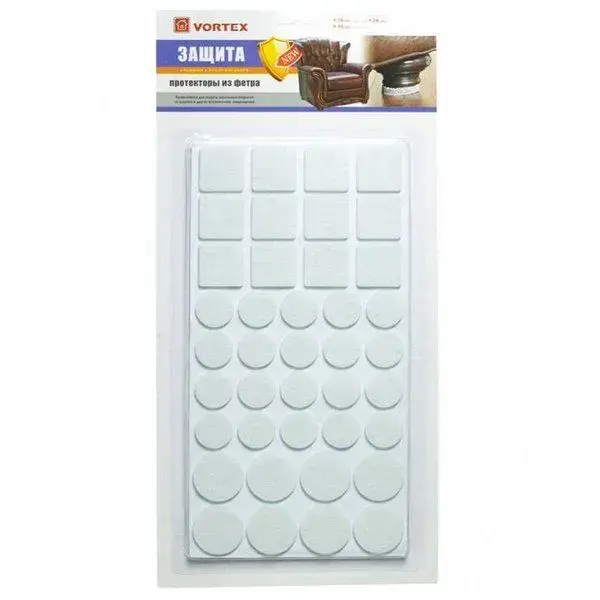 Диаметры и размеры протекторов идут миксом — позволяют выбрать оптимальный для конкретных ножек мебели. Материал — качественный фетр светло-серого оттенка, максимально универсальный по цвету и незаметный в интерьере. Упаковка прозрачная, все протекторы сразу видны, что удобно для выбора. Использование: снимите защитную пленку, приклейте к мебельной ножке, и наслаждайтесь тишиной и аккуратным полом без повреждений.
