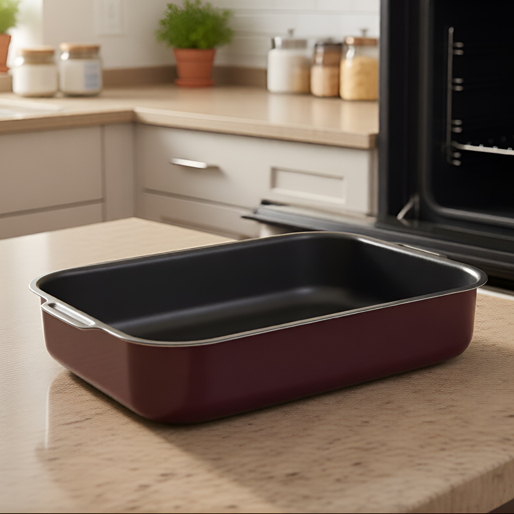 Противень предназначен для использования в бытовых духовках и подходит для приготовления пирогов, запеканок, мясных блюд и выпечки овощей. Его эргономичные боковые ручки позволяют безопасно и удобно переносить изделие даже с горячим содержимым.