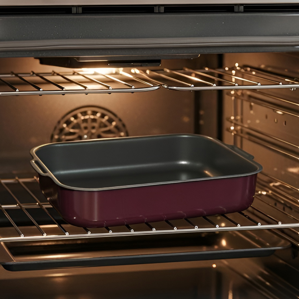 Размер и форма позволяют использовать противень как для повседневных, так и для особых случаев. Он идеально вписывается в стандартные духовки, занимая минимум пространства, при этом расширяя возможности кухни благодаря своему функциональному дизайну.