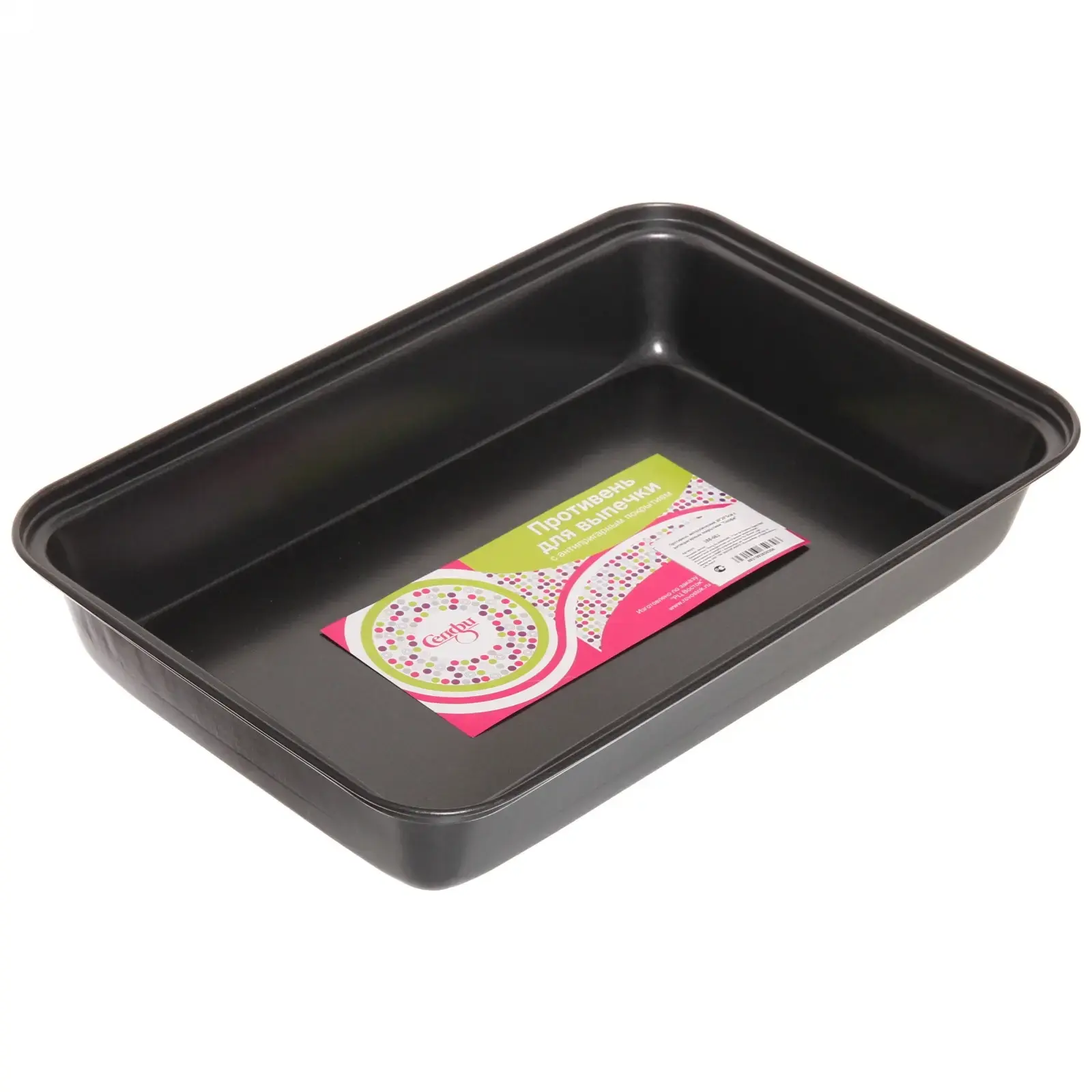 Противень выполнен из прочного металла, что обеспечивает его долговечность. Черный цвет и гладкая поверхность придают ему стильный вид, а высокие стенки позволяют готовить разнообразные блюда, от запеканок до выпечки. Этот противень станет незаменимым элементом вашей кухонной утвари.