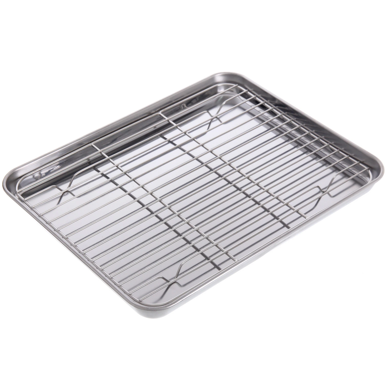 Вы можете использовать элементы как вместе, так и по отдельности: противень — для запекания и выпечки, решетку — для остывания готовых блюд или глазирования.