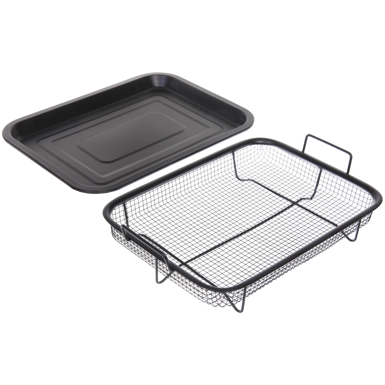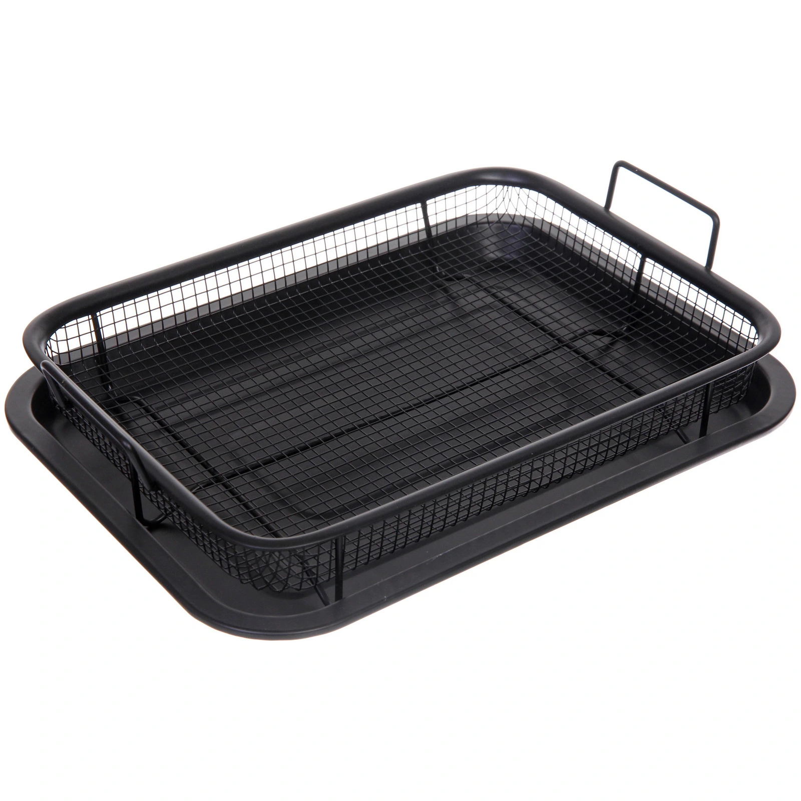 - Решетка удерживает продукты над поверхностью противня, позволяя жиру стекать вниз.